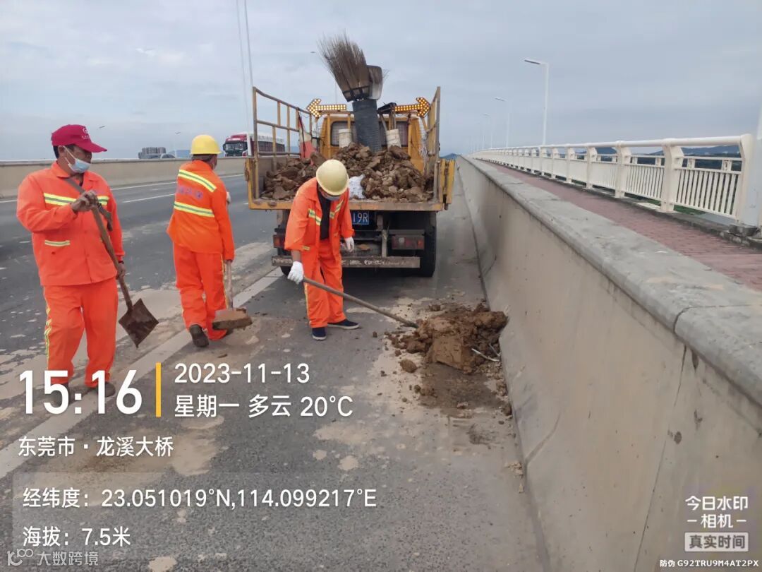 4、加强龙桥大道、龙岗大道路面保洁降尘。