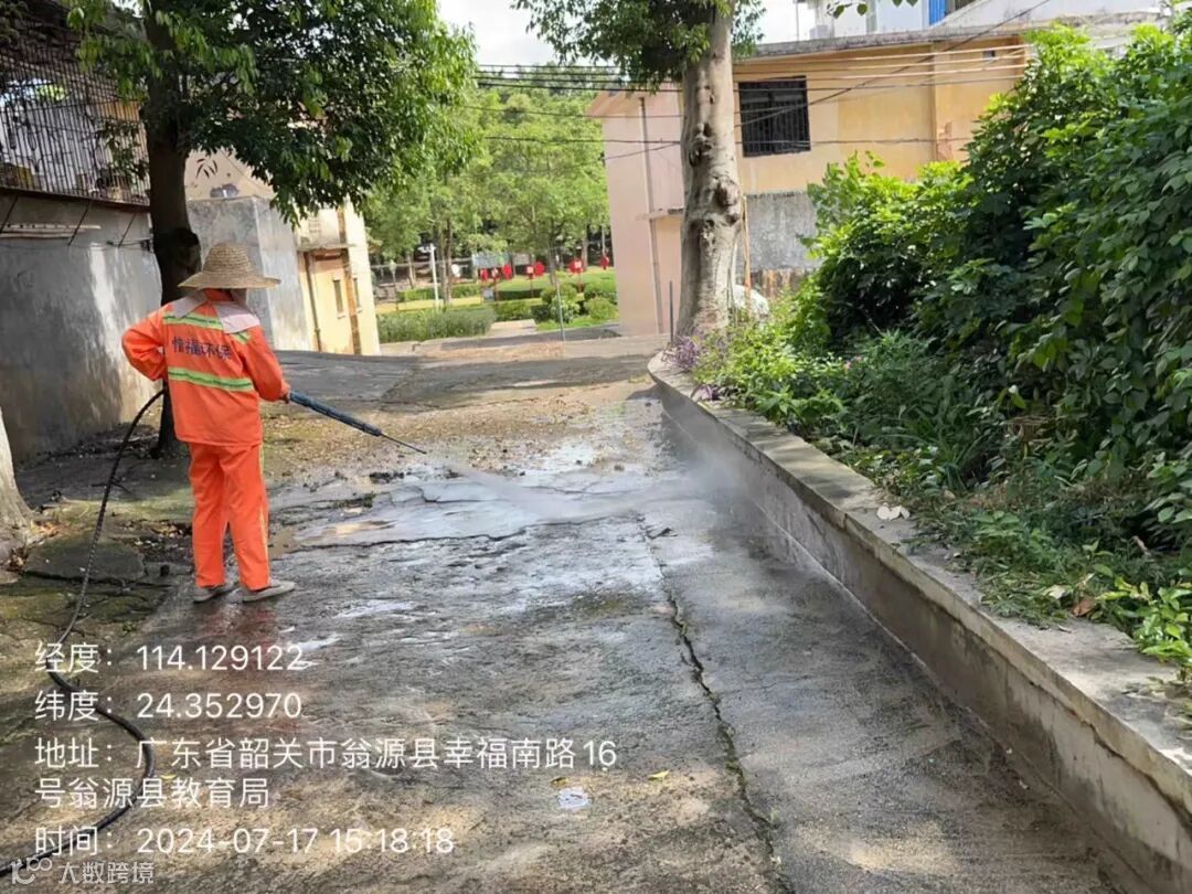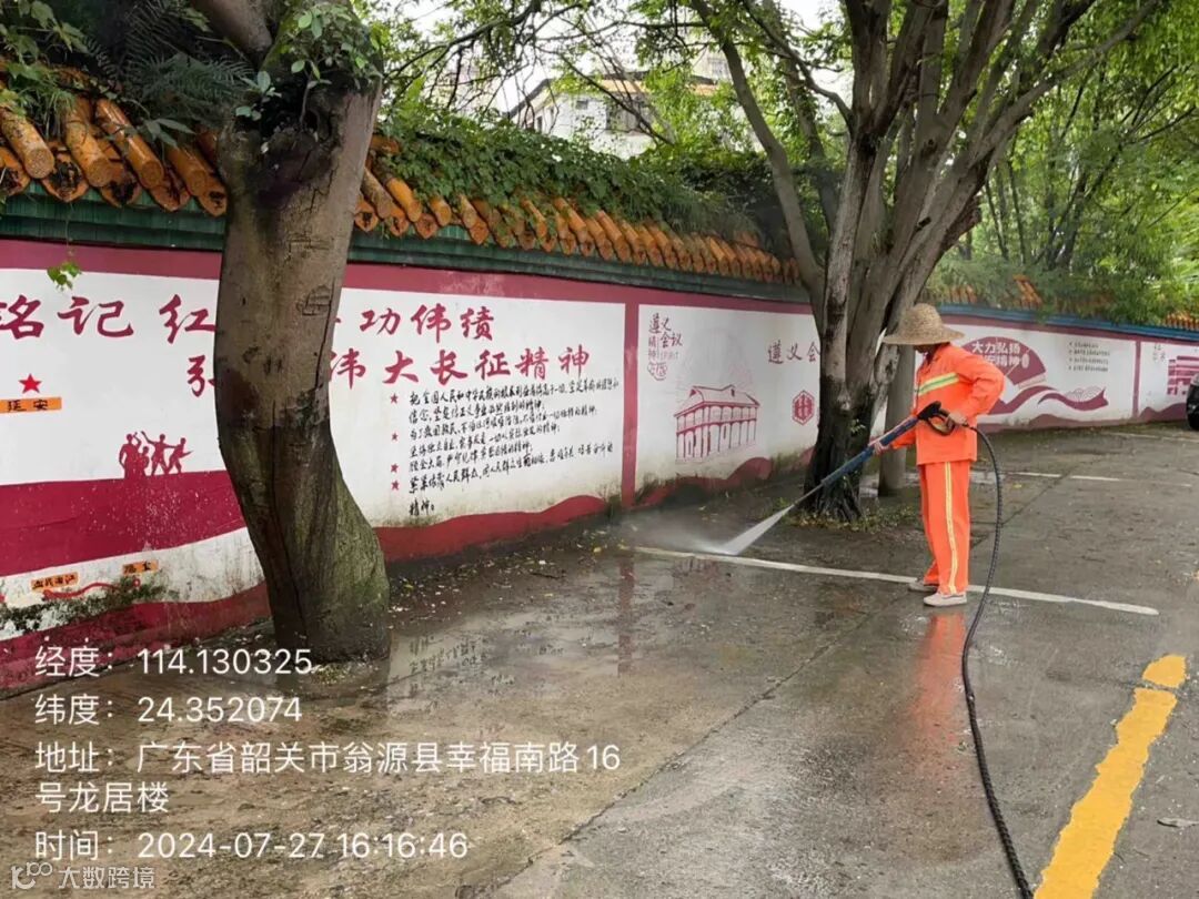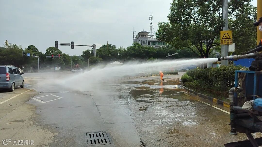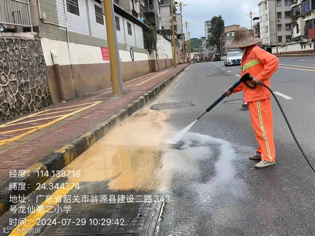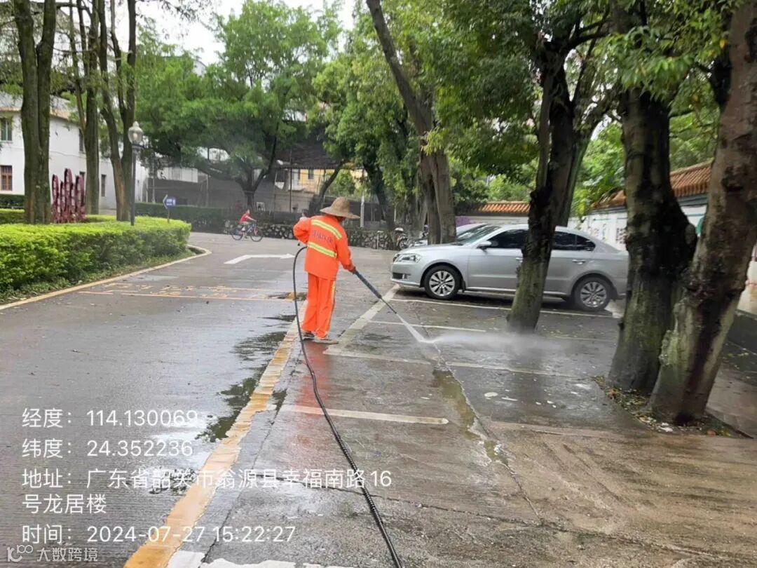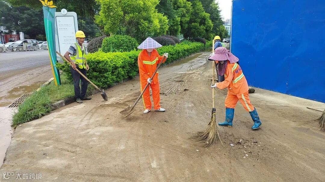 冲洗及清理暴雨后流出来路面大量泥巴。