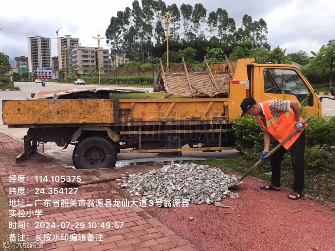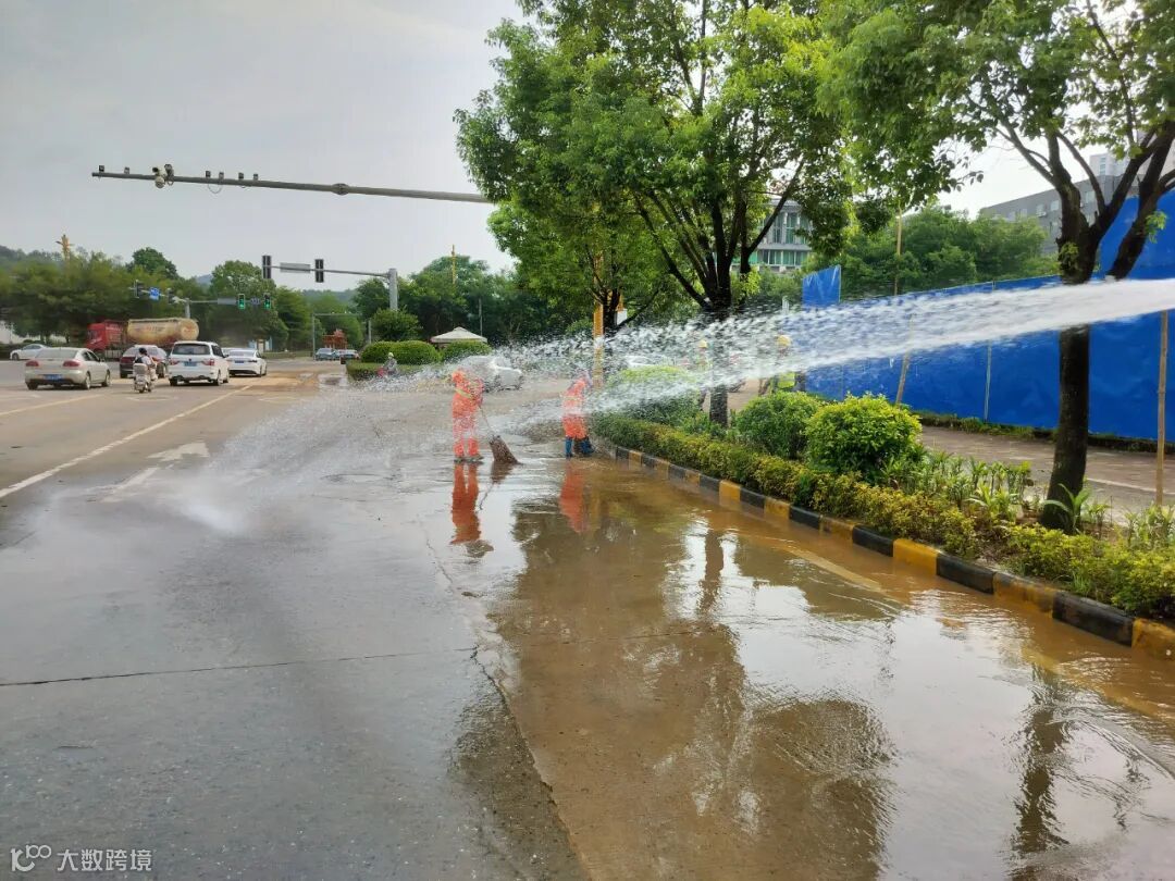 6、冲洗及清理暴雨后流出来路面大量泥巴。