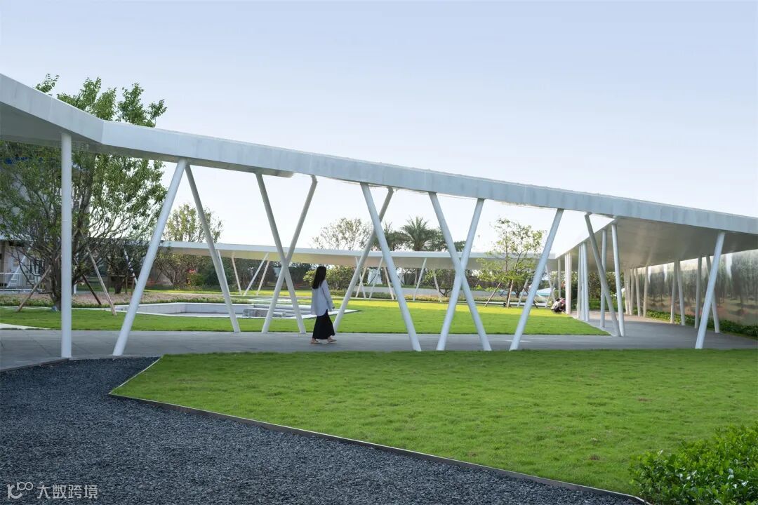 廊架既有遮风避雨的基本功能,同时有观赏性,还能营造通幽的氛围,当廊架与自然植物和谐搭配时,漫步其中既能感受到人为的结构,还可以在城市感受到自然的清新。当廊架运用新型材料和现代技术时,它就突破了高度、弧度、造型,廊架就能蜕变得活泼、灵动、延伸。