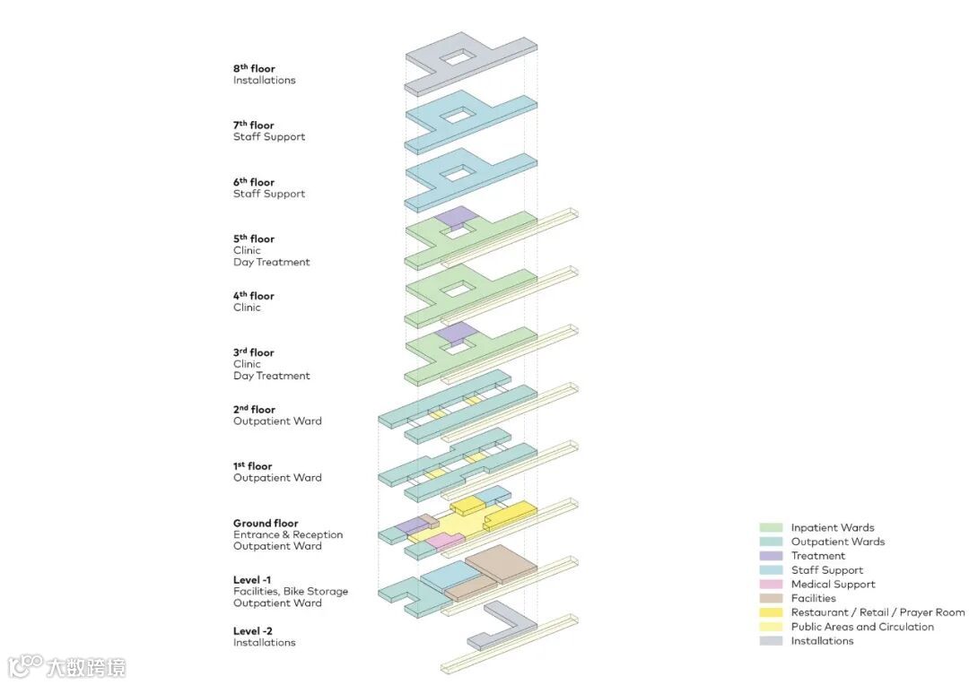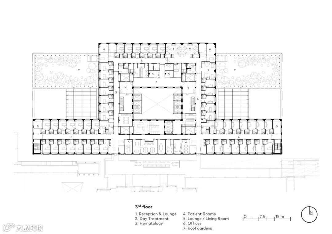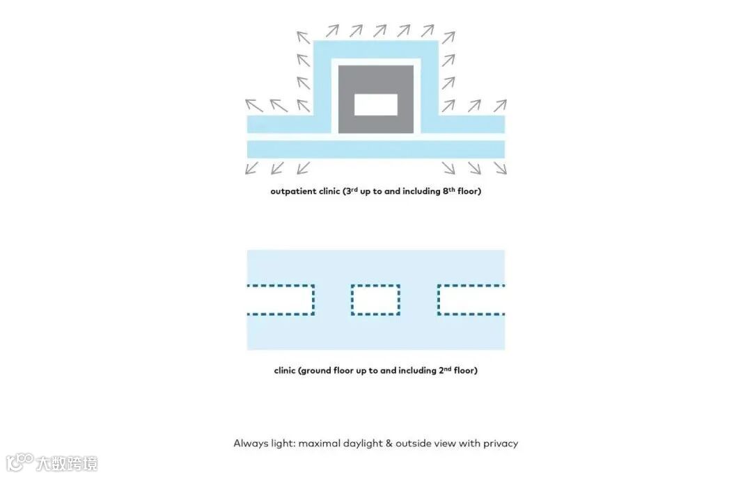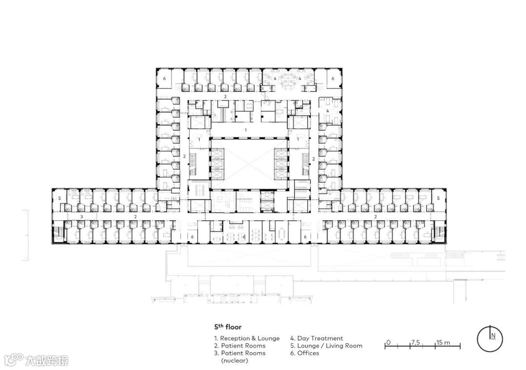 主楼布局清晰,服务和物流的空间被战略性地放置,巧妙地适应视听点,以及综合技术创新,为各种专业提供了必要的自由布局。这种独特的、适应性强的能力构成了建筑的愉快、可持续和持久使用的基础。它也确保了来自不同专业的专家感到受欢迎和舒适。而这也使建筑使用者在现在和将来都能提供和接受个性化的创新护理。