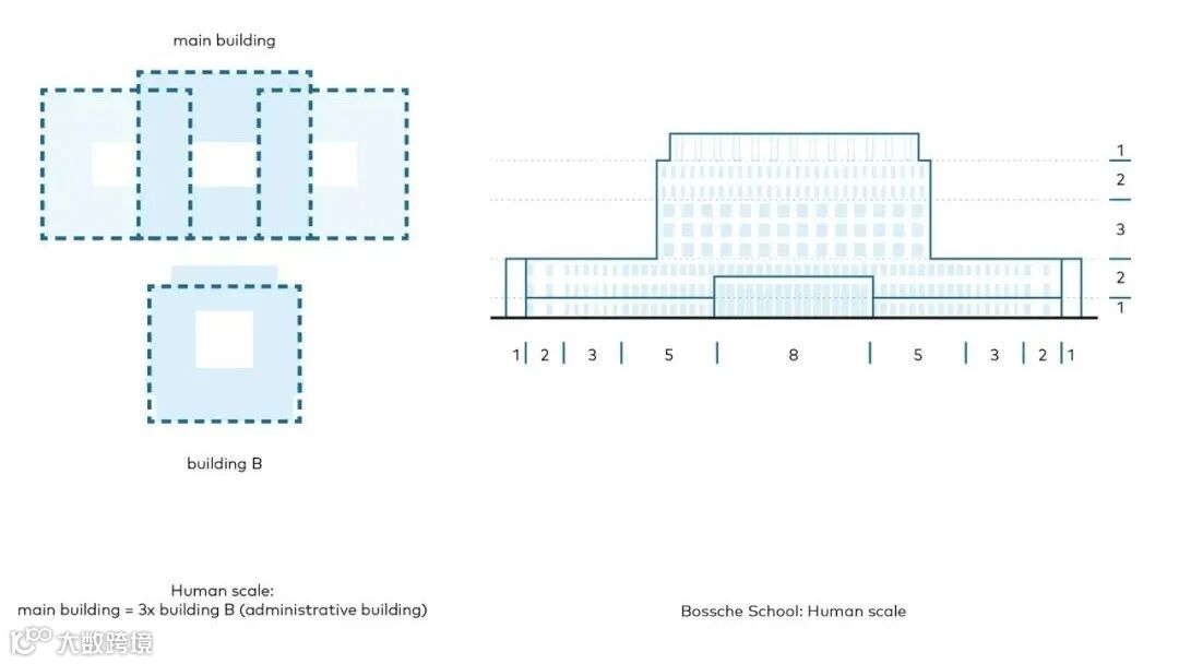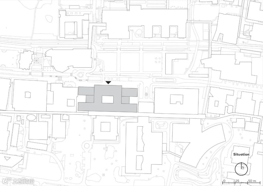 与校园内现有的纪念性建筑--博舍学校风格--和谐地融合在一起。克制的设计是基于从黄金分割中得出的理想尺寸。虽然有些楼层有一个足球场那么大,但他们从来没有感觉到巨大,而是平静和熟悉。尺寸设计、清晰的空间构成和流通性有效地促进了医疗机构和病人的福祉和健康。