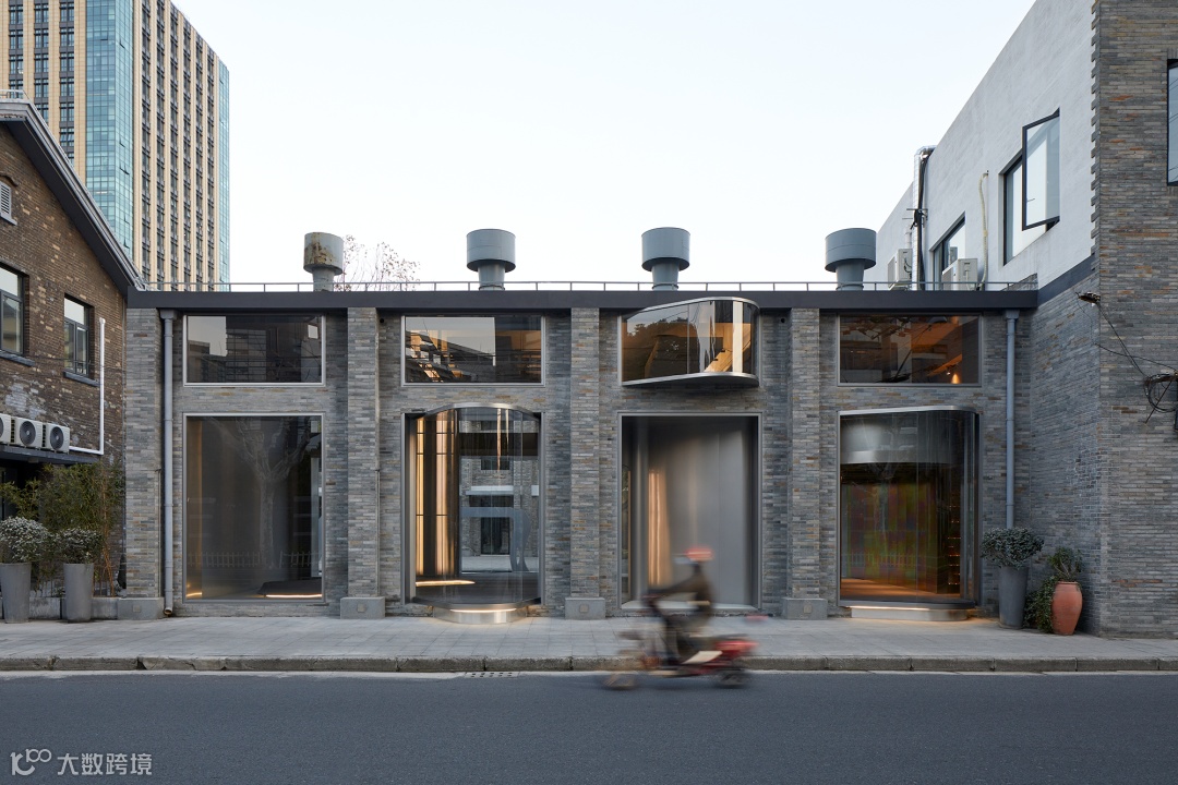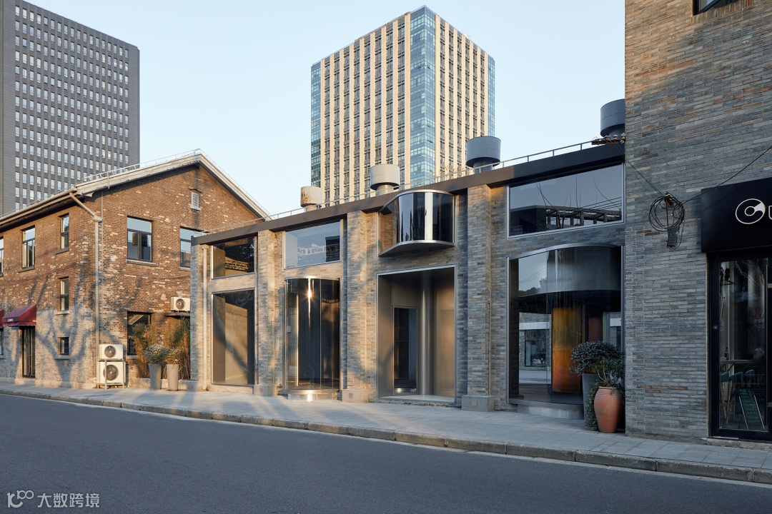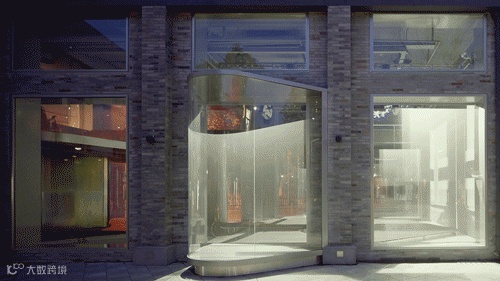 首先,设计师在开窗的位置嵌入若干向外凸出的弧形玻璃界面,作为建筑内部空间的延伸。人们可以真切的步入其中,在感受数字光影效果的同时,又融入街道。