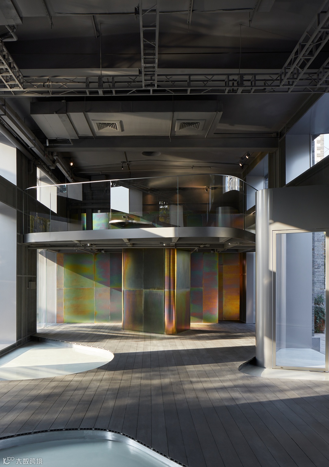 于是,观者在展馆内部,可体验到多重影像的虚实叠合、交互,拓展空间纵深感;而从外部观瞧,则能领略不同窗口界面展现的“移步换景”式光影,更具“窥豹一斑”的神秘感。