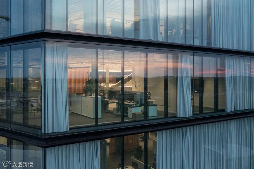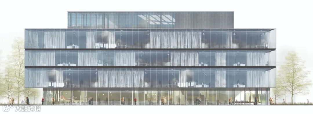 拥有灵活的工作环境,其灵活性体现在其外立面的不断变化的特点上。建筑最小的玻璃体块采用了精密且优雅的钢条连接,而半自动窗帘系统提供了一个有趣但功能强大的遮阳系统。该系统将低技窗帘与高技自动轨道系统相结合,跟随太阳路径窗帘就可以为工作区和休息室提供不同程度的遮阳效果。
