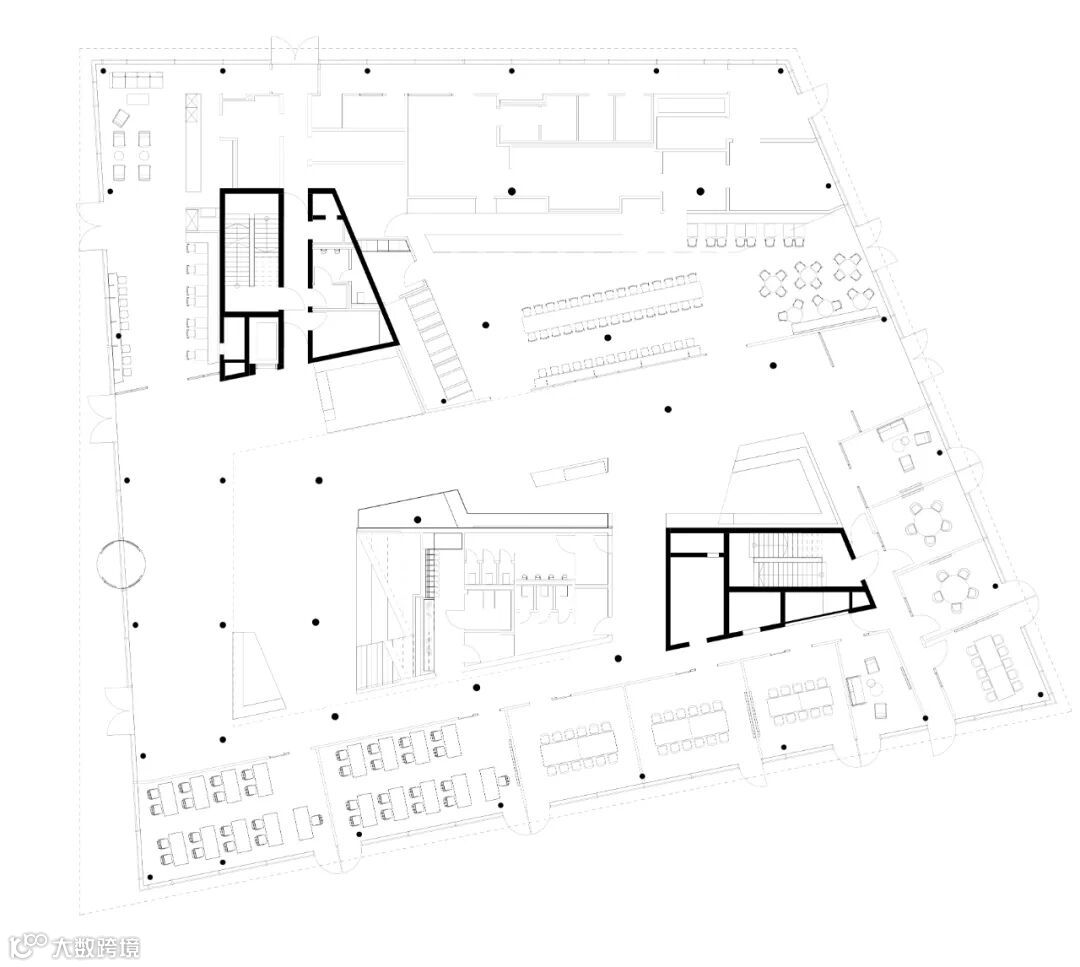 这座全新的总部是一个建立联系和协同工作的平台,建筑面积13,250平方米,包含一个公共食堂、灵活的协作空间、专用工作区、健身房和屋顶露台。这些空间围绕着一个充满活力的室内中庭展开,其旋转和重叠切口将单层、双层和通高空间融为一体。中庭还为建筑创造了一个充满活力的社交中心,其层叠楼梯的功能就是作为一个非正式的交流空间。