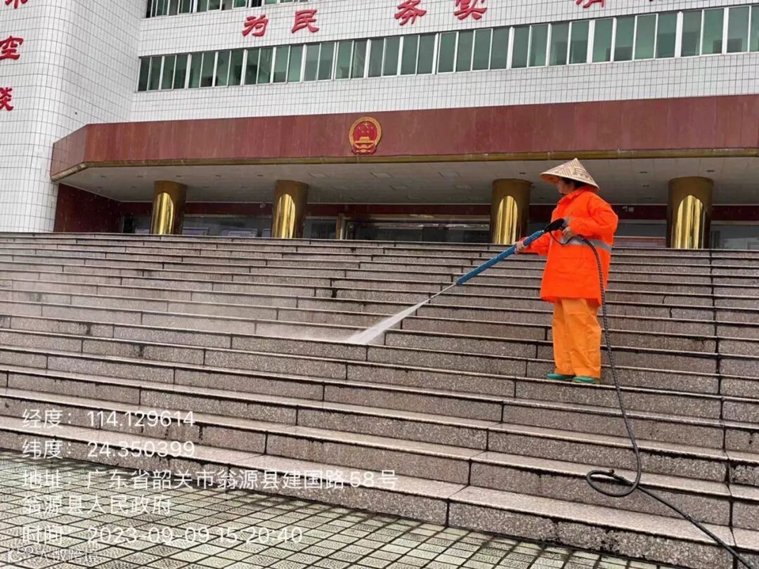 7、机械与人工相结合对路边路沿及政府办公大院进行冲洗。