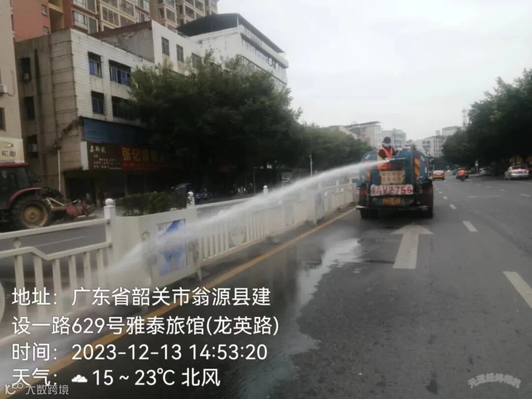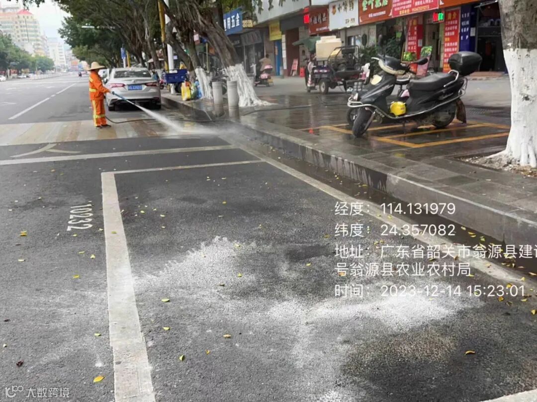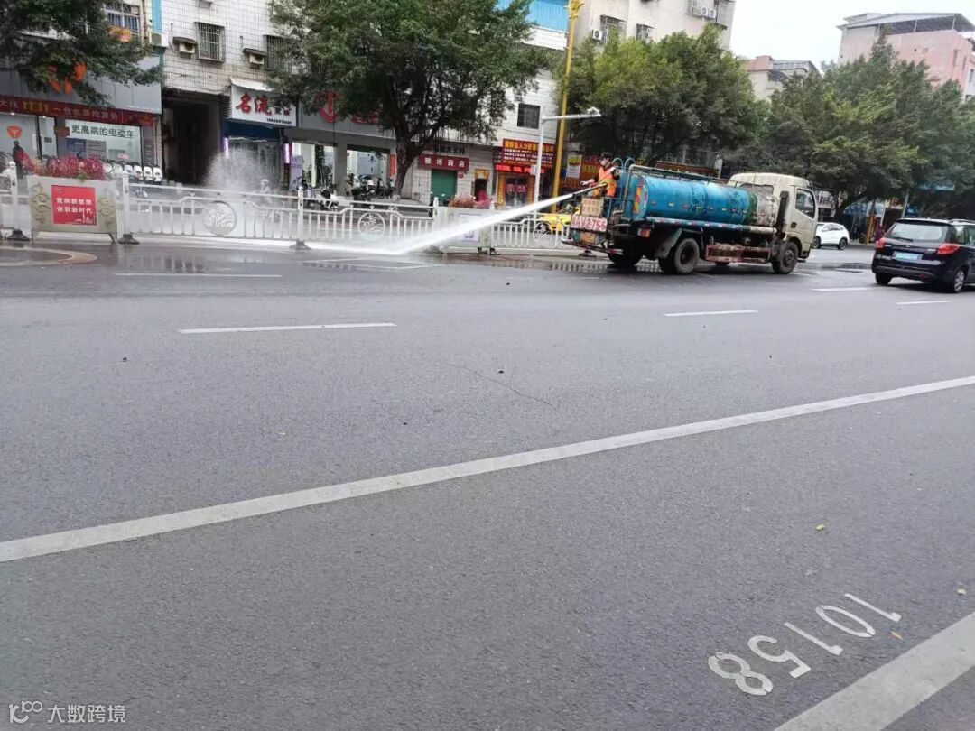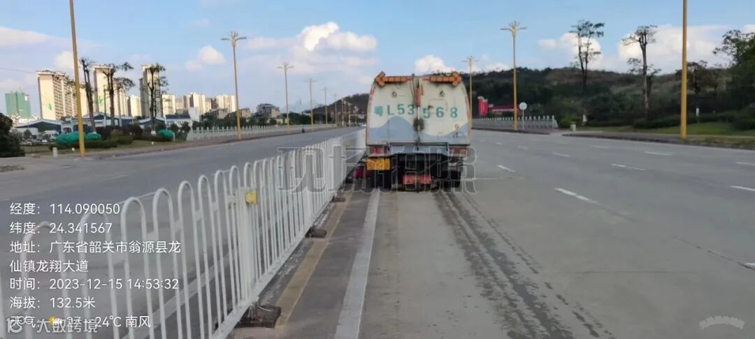 冲洗马路和护栏