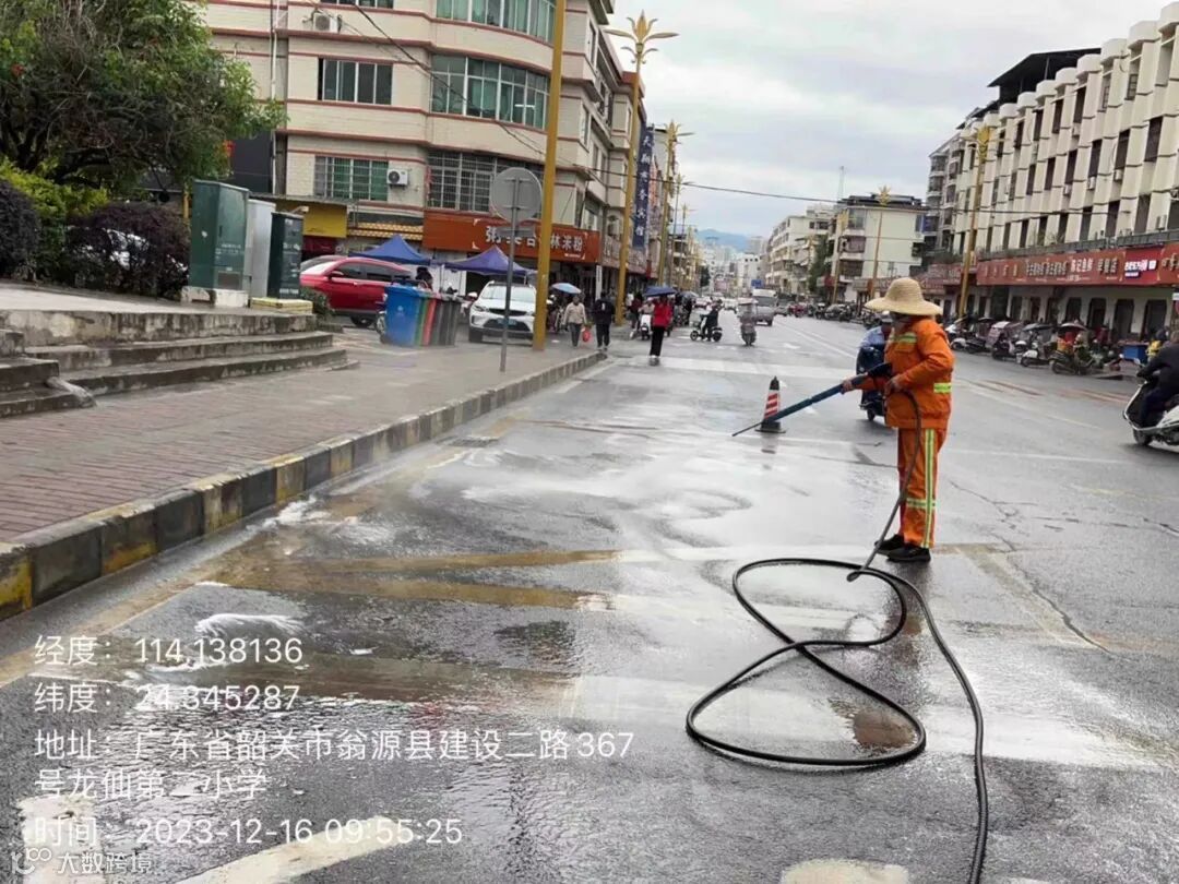 3、组织突击人员冲洗马路和护栏。