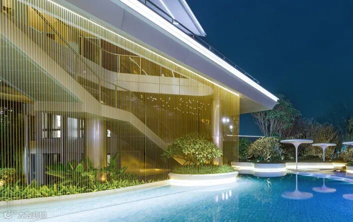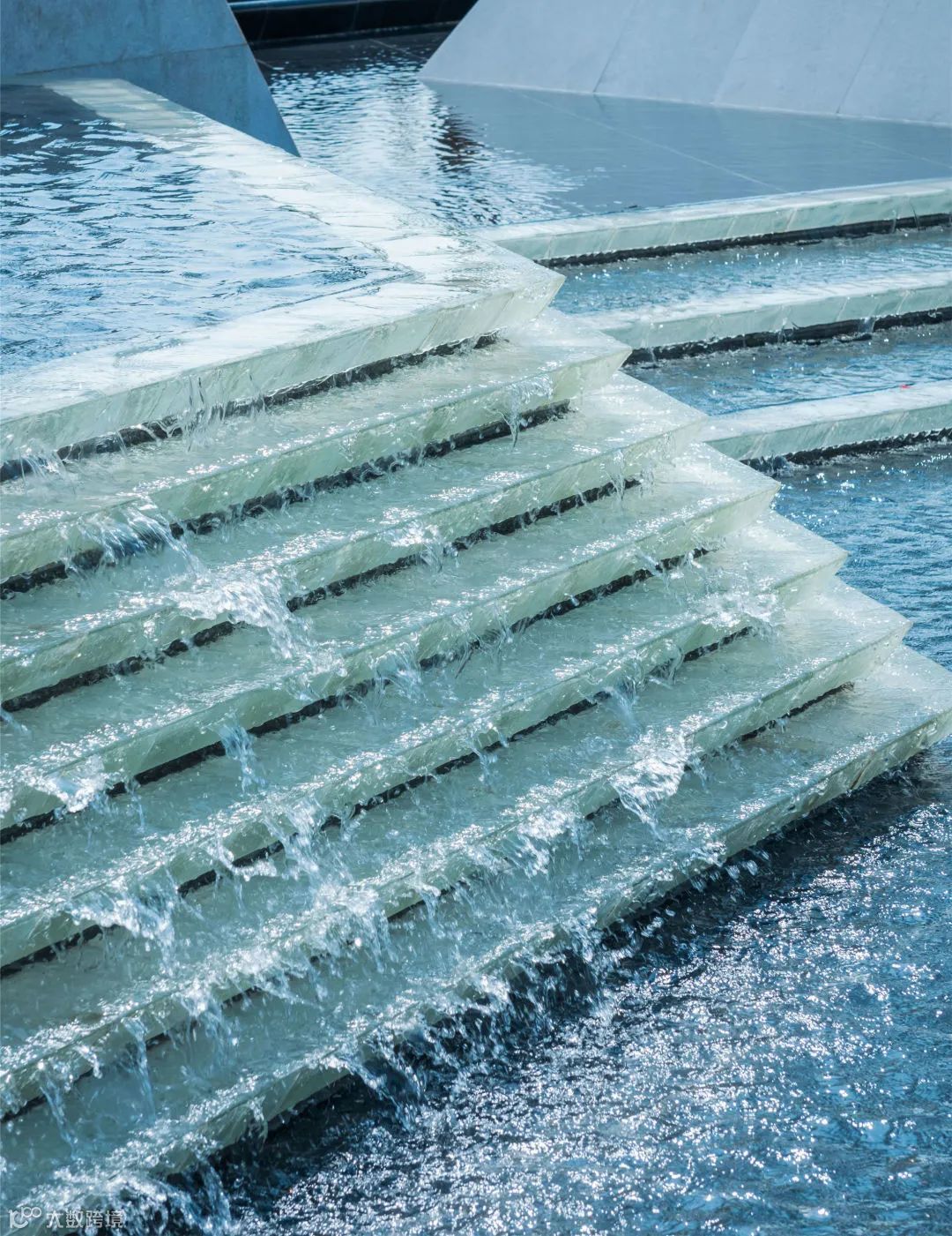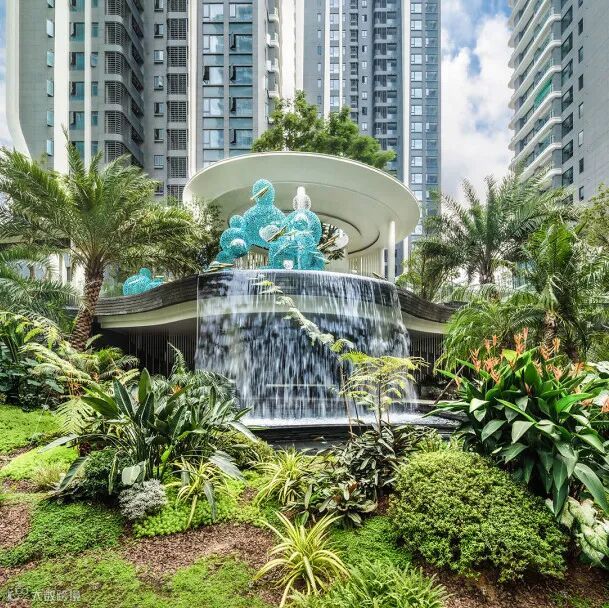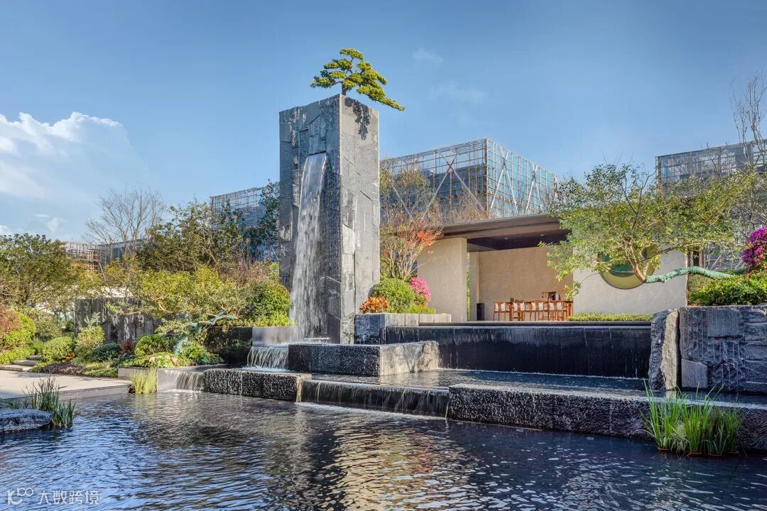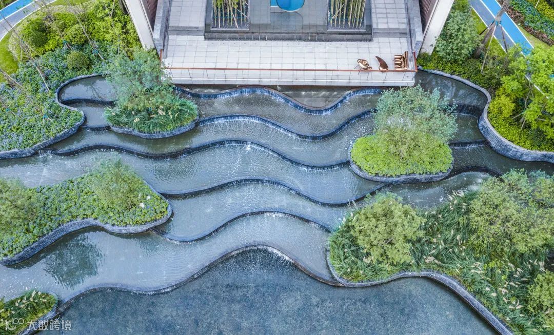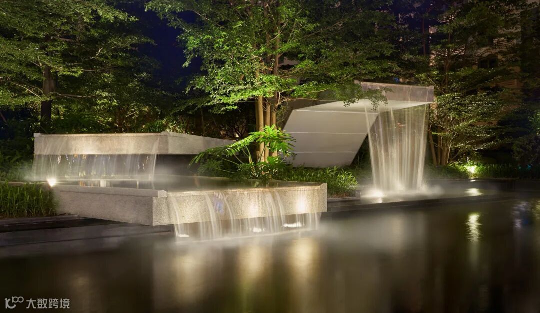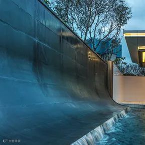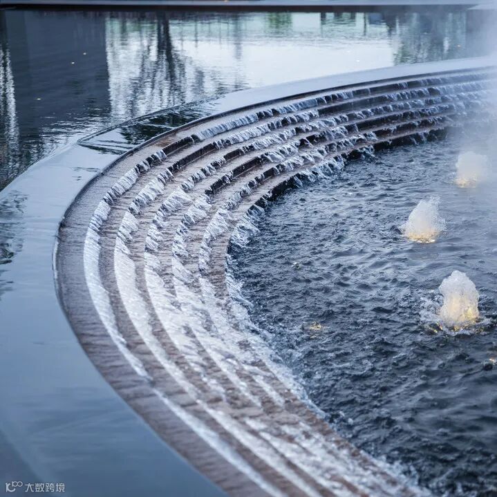 层级跌水是流水分层处理后,使水体呈现有节奏的跌落形态,层级之间落差越小,跌水的柔和感越强,而层层叠叠、顺势而下的跌水形态,或规则、或错落,丰富水景的层次感。