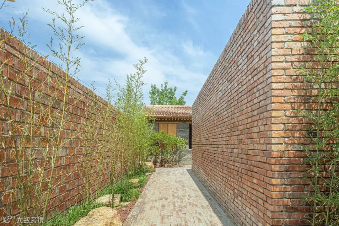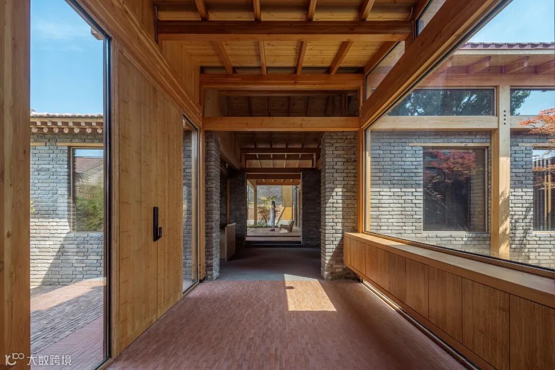 新建围护墙体全部采用当地回收的旧红砖和青砖砌筑而成,也实现了废旧材料的循环再利用。旧房修缮的环节中,保留下来的北房外墙为白色瓷砖,现场决定剔除打磨,露出原来基层的红砖墙面。南屋局部屋顶在拆除过程中发现原有结构破损严重,墙体也有倒塌的风险,因此落架重修,替换部分木构件,墙体用旧青砖按原建筑形式重新砌筑。