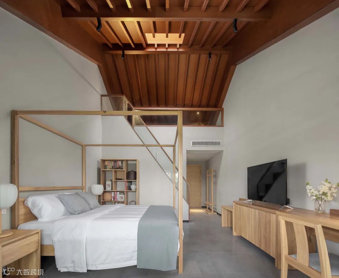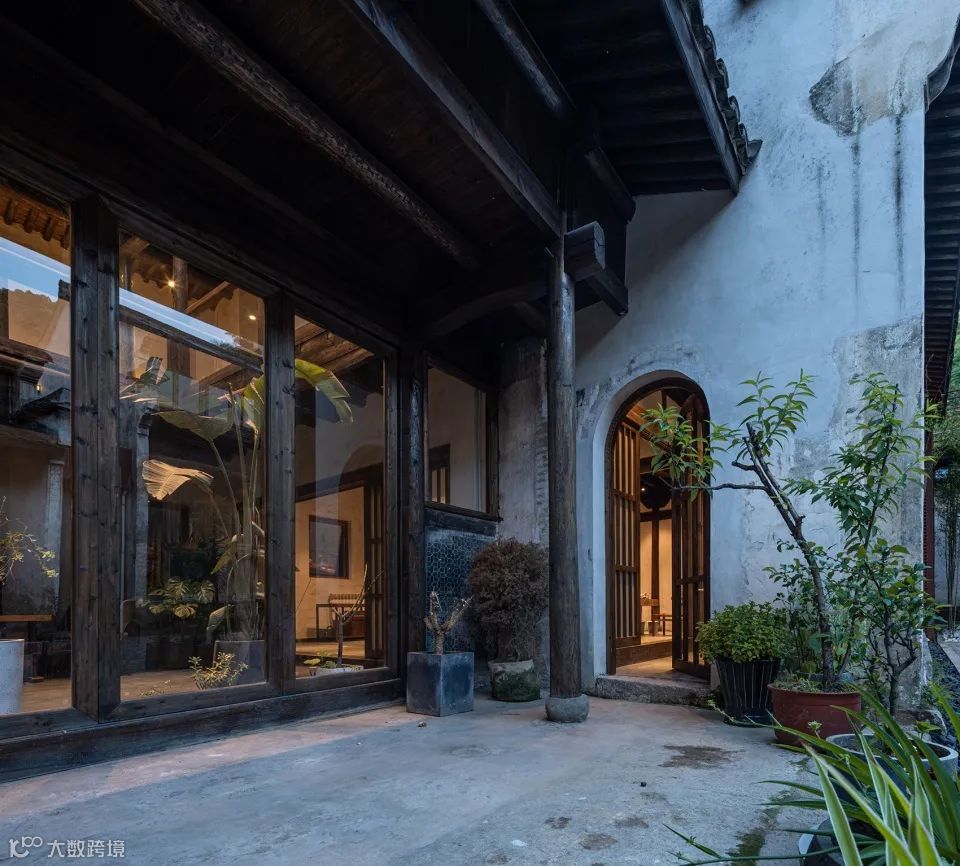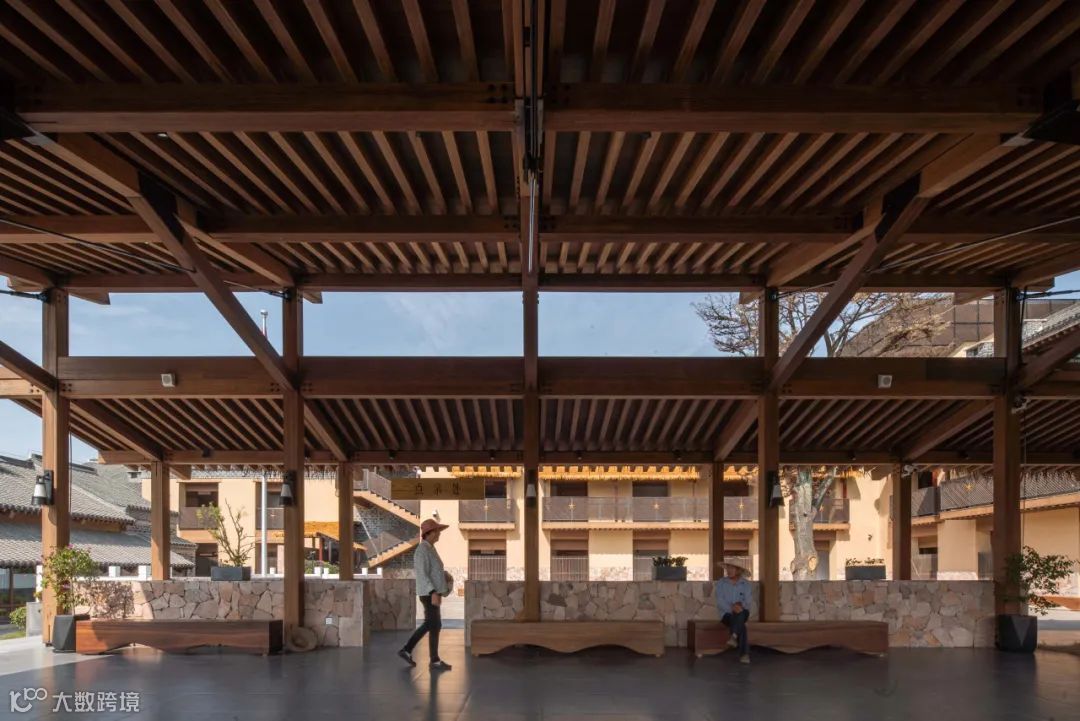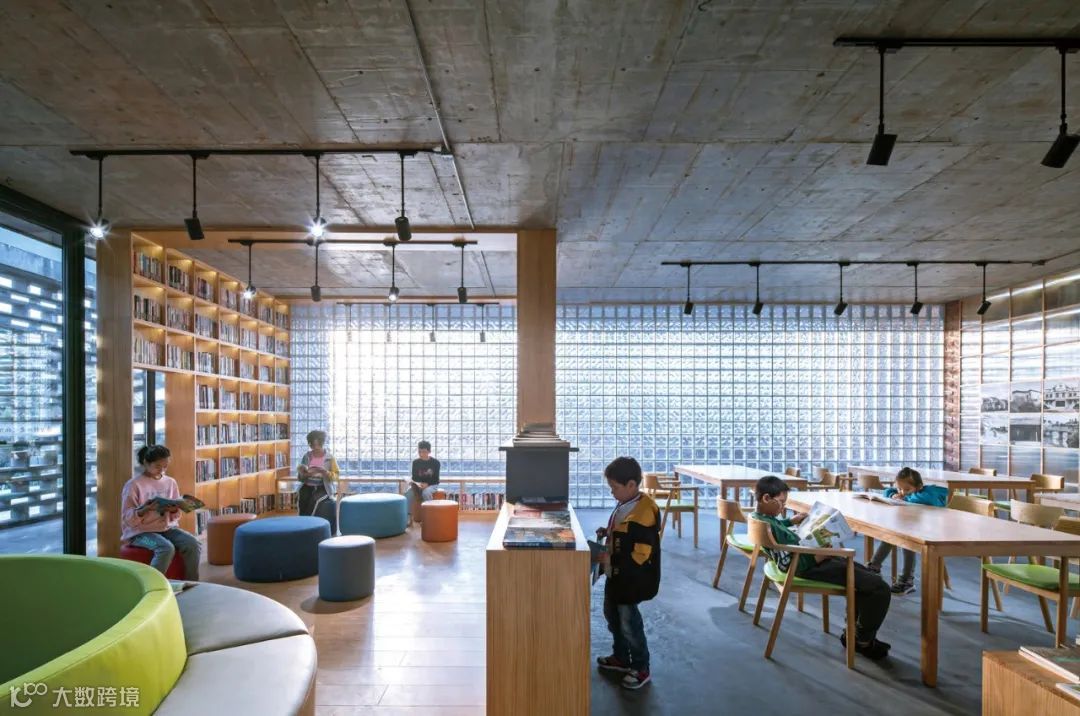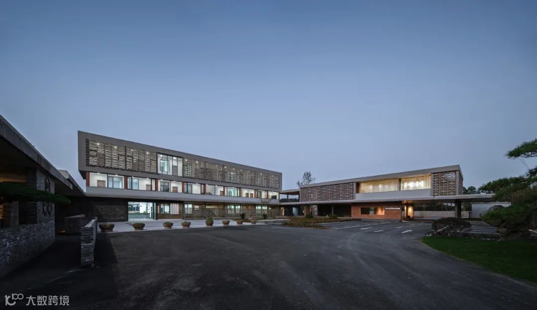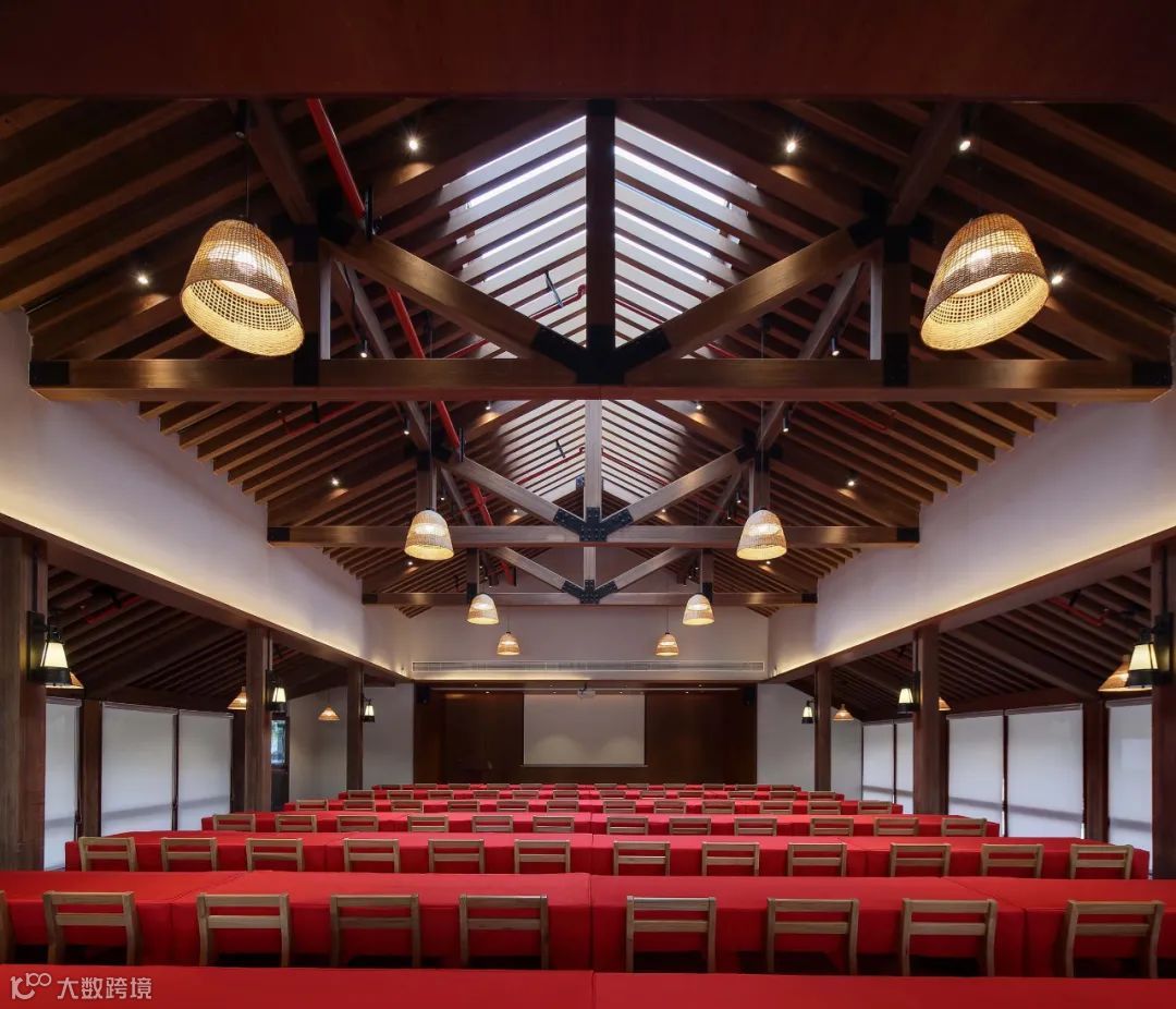 在材料的选择上,通过就地取材泥、沙、砾石组成的夯土墙,构建朴素的外墙立面,通透的玻璃瓦与青瓦的相结合,形成了现代元素与传统元素的冲突与碰撞。