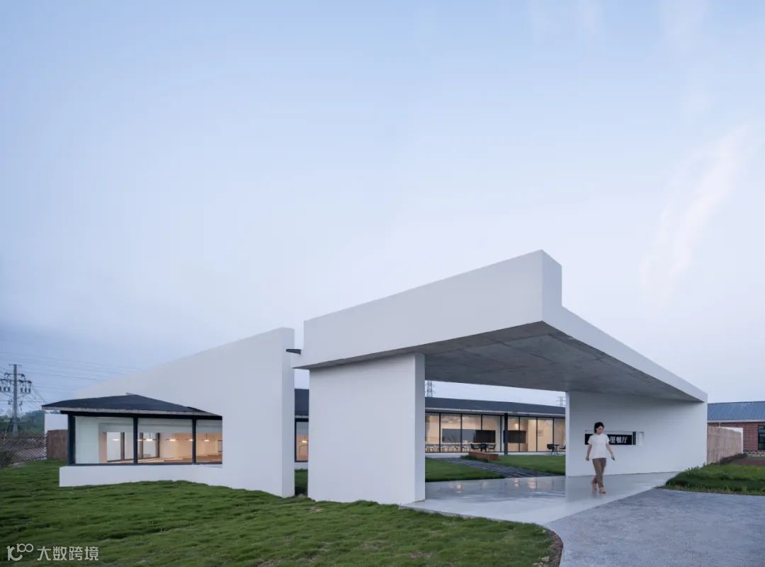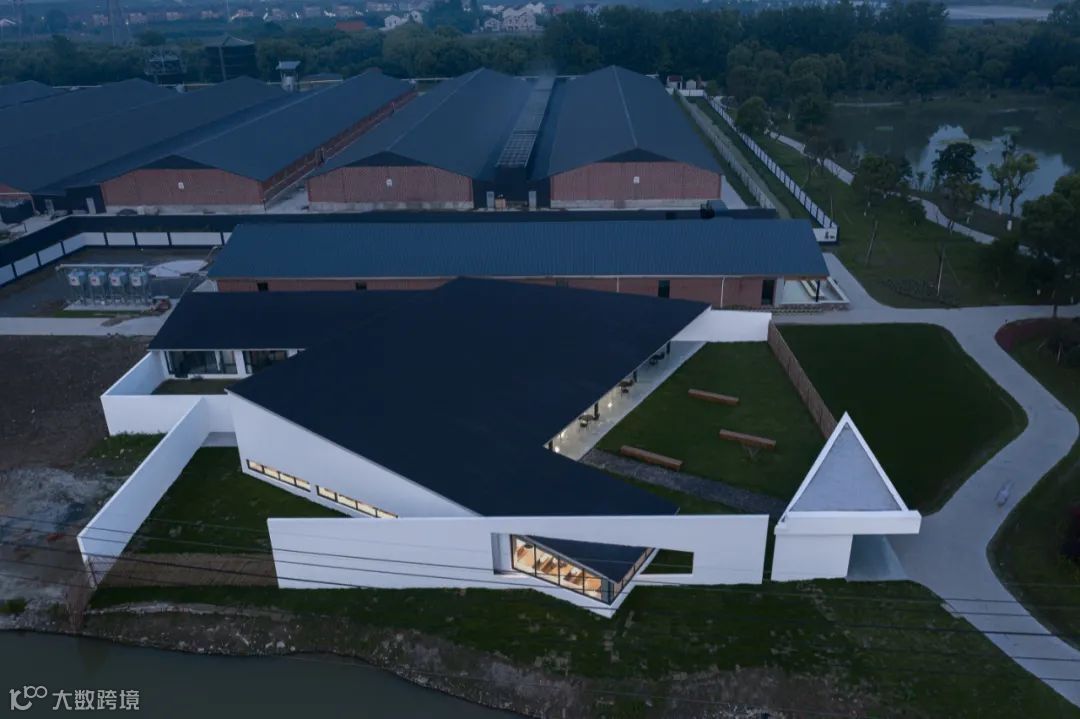 丰收村民居基本都采用白墙加灰色坡屋顶的做法。体验馆采用6组打散的坡屋顶“簇群形态”来呼应当地居民的“建筑原型”;立面材料也延续当地做法,采用白色涂料。