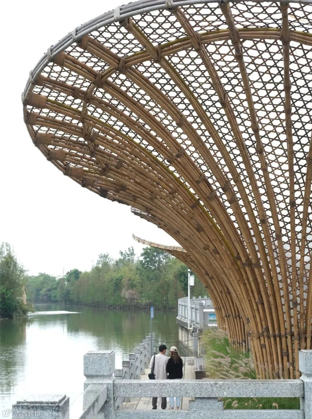 黄龙滨水竹廊:一体化竹伞