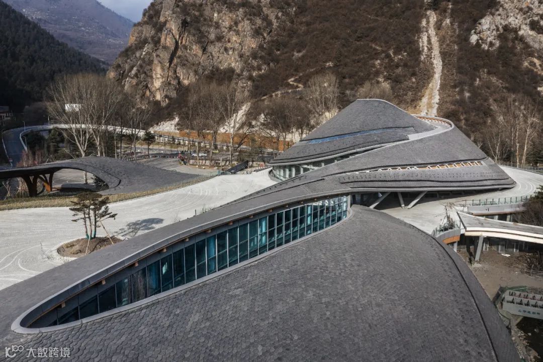 设计立意与九寨沟自然山水形态呼应,建筑内外充分体现藏文化内涵,造型舒展流畅,融合传统文化与现代风格,是富有深厚文化底蕴、集各项管理服务功能于一体的“环境建筑”。