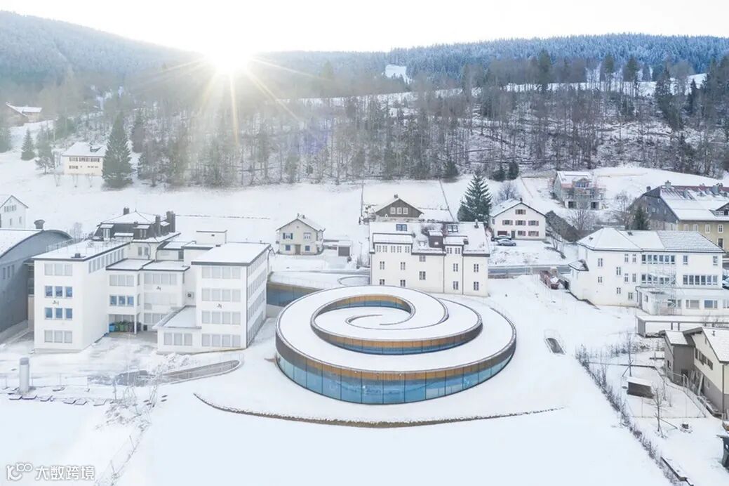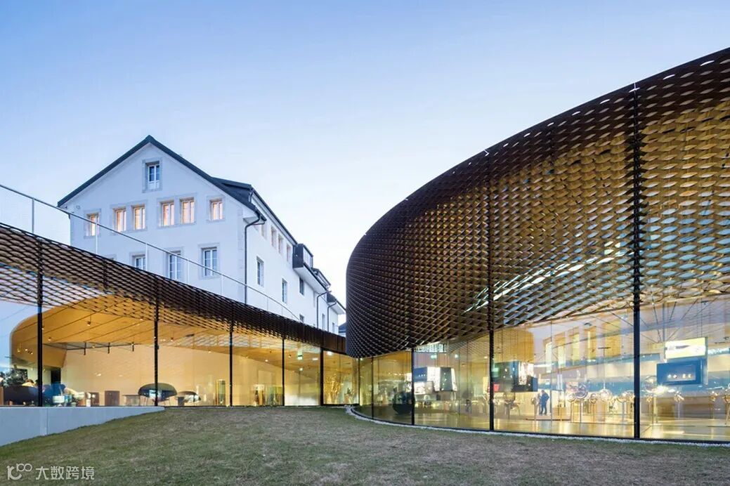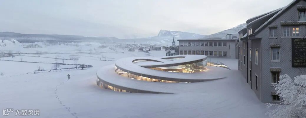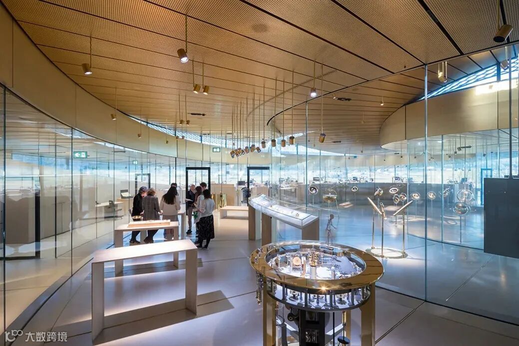 将此博物馆的设计视为爱彼钟表的延伸。在内部,这些地板遵循不同的坡度以适应自然地形,并为博物馆内部布局延伸到线性连续空间体验提供了基础。弯曲的玻璃墙循着顺时针方向汇聚,颇有一种在钟表内行走探索的新鲜感。