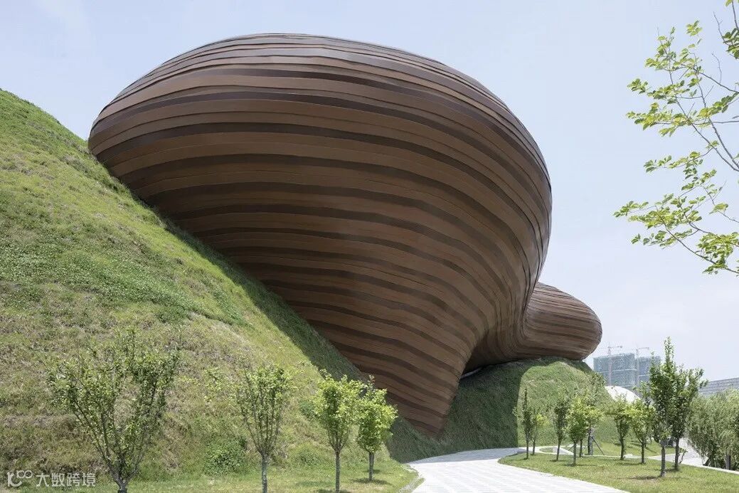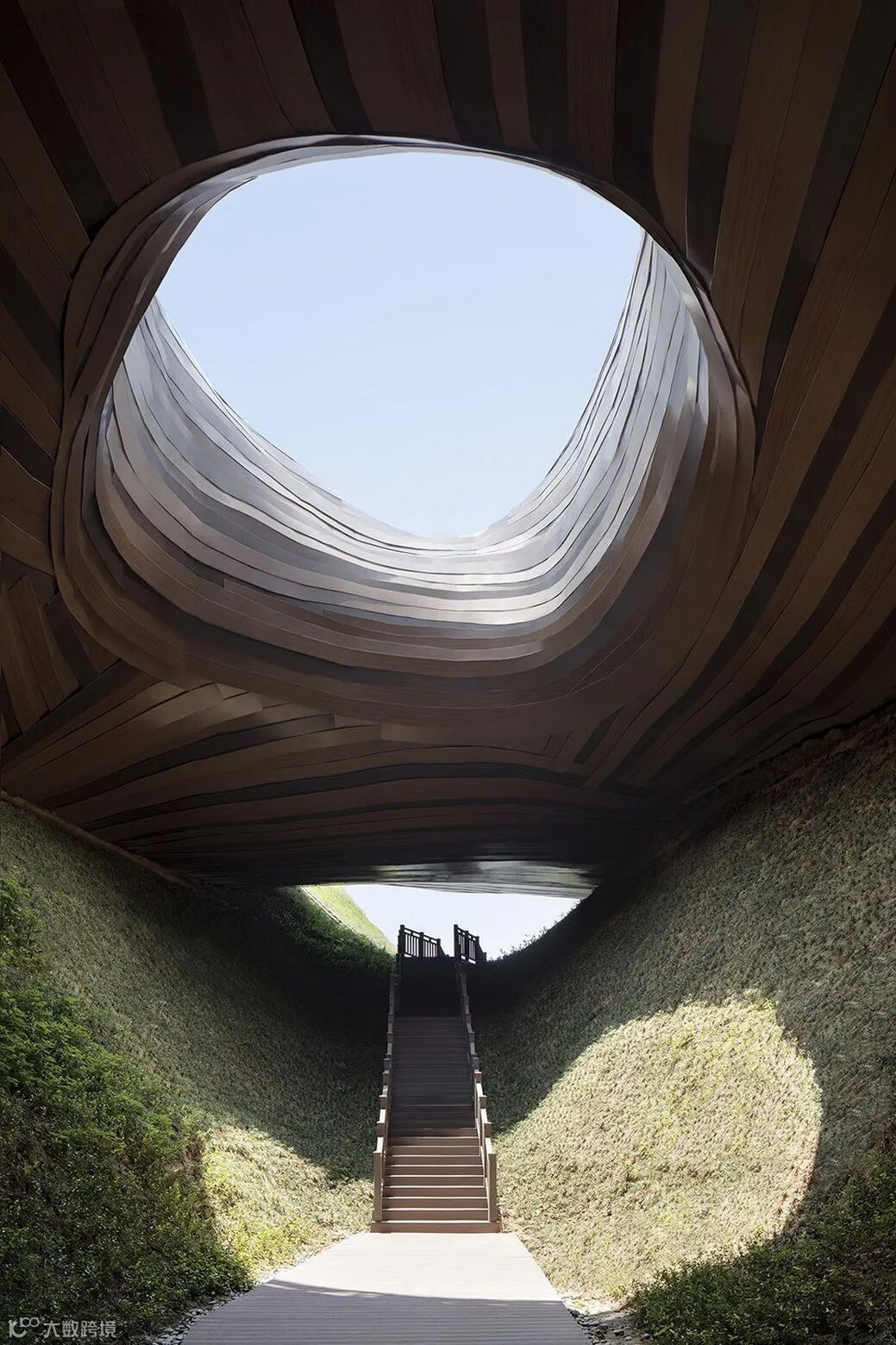建筑配置上强调三维向度,下部借由有机元素的并列与地景整合,人们可以随意编织出虚实交替的参观动线。当参观者进入“未来”展馆内,可以在高处用不同的视野感受整个环境之美。