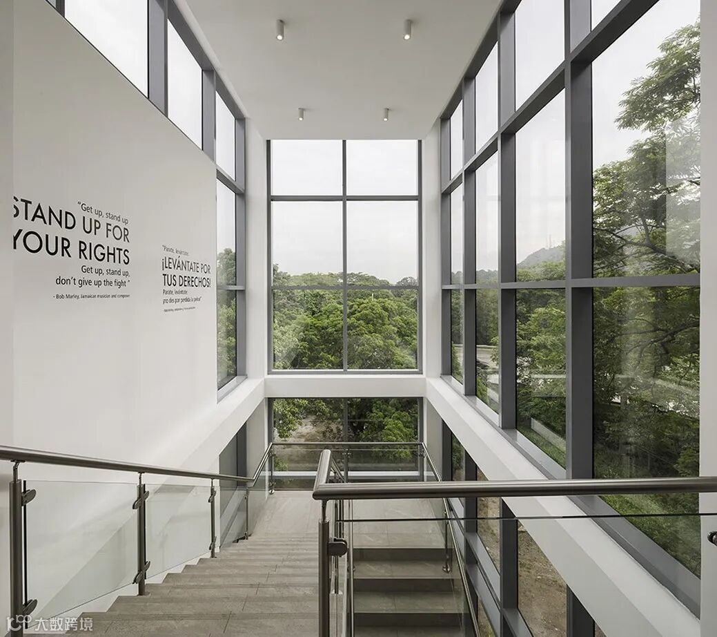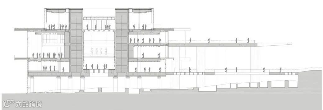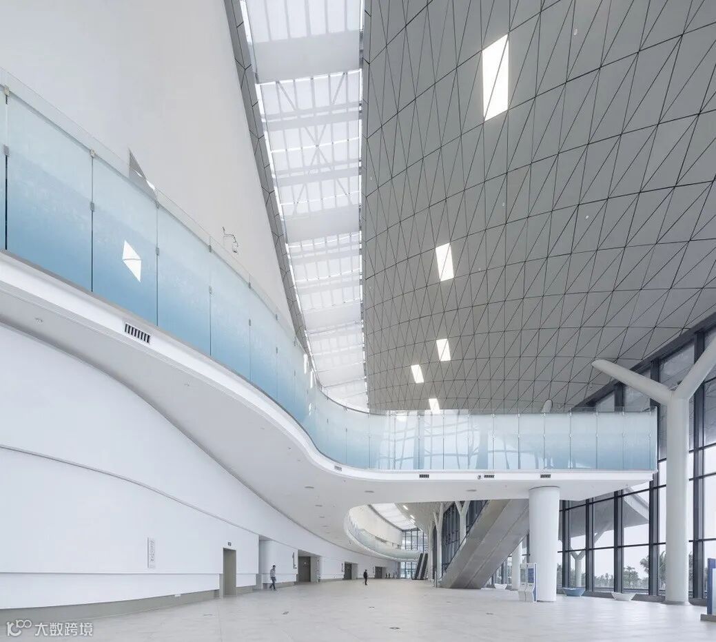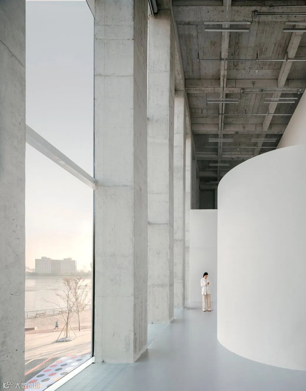 面对得天独厚的滨海景观,博物馆中设置了沿南北向伸展并与海面平行的观海长廊,成为景观和展厅之间的中介,营造了一个开放、明亮、气韵流动、令人印象深刻、轻松愉悦的空间。