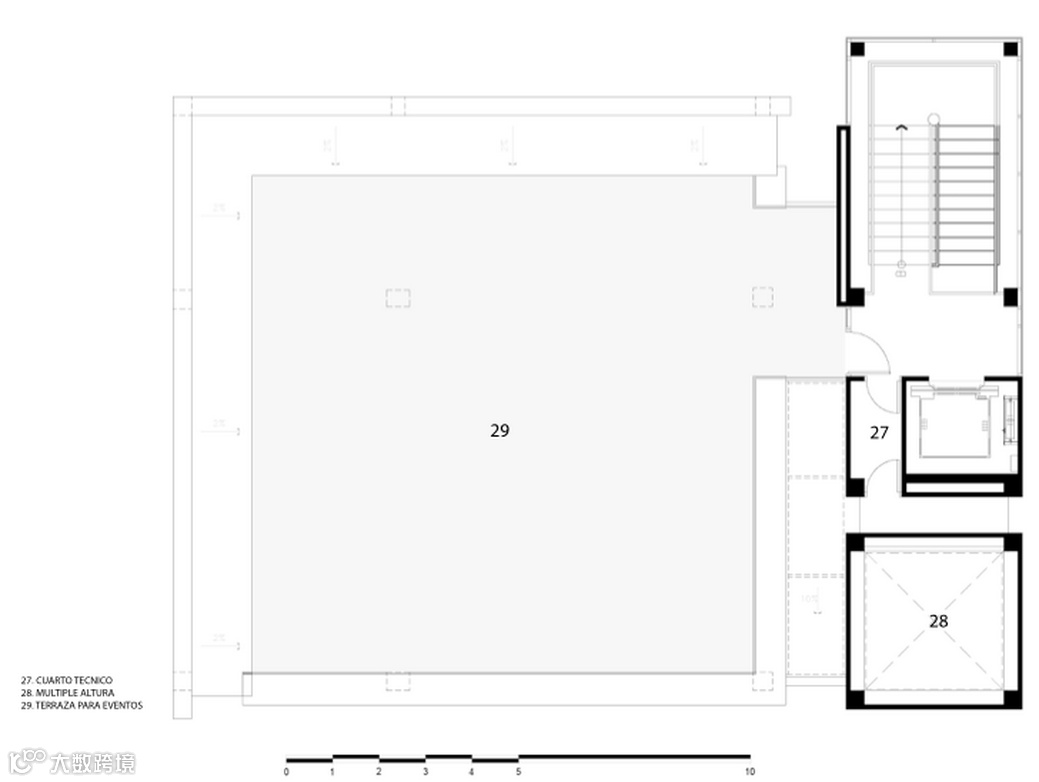 漂浮量体下方所形成的宽阔的遮阴入口广场,在水平方向是通向中央公园西南角的主要入口,中空广场会形成通风凉爽的微气候,称为参观者们相约的新据点。