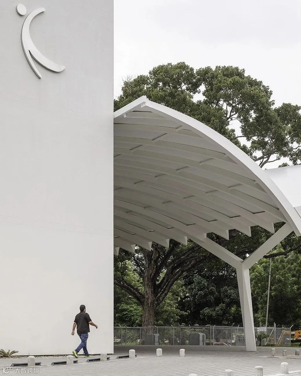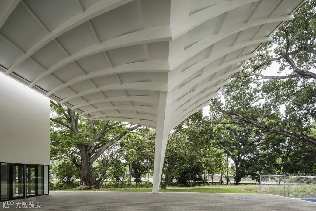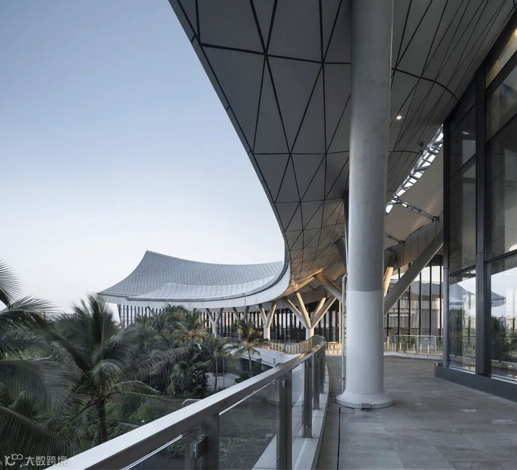 一座巨大的国家级文化殿堂,用一气呵成、起伏有致的姿态戏剧性地融入到乡野质朴的热带海滨,这种巨大的冲突感被顺应岸线的优雅形体曲线、大落差全覆盖的双坡屋顶、丰富的檐廊空间所一一化解,配合上丰茂的热带植物、开阔的海面以及迎面袭来的海风,呈现出和而不同,不同而又协调的景象。