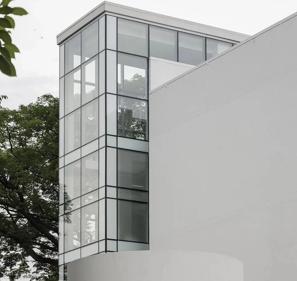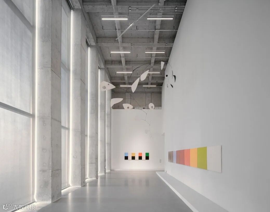在室外,透明的立面以及智能室内灯光控制系统,使得建筑的入口大厅和过渡区域清晰可见;在室内,参观者对室外的城市景观一览无余,仿佛置身室外,高度6到17m,完全开敞的无柱展览空间加深了这样的体验。