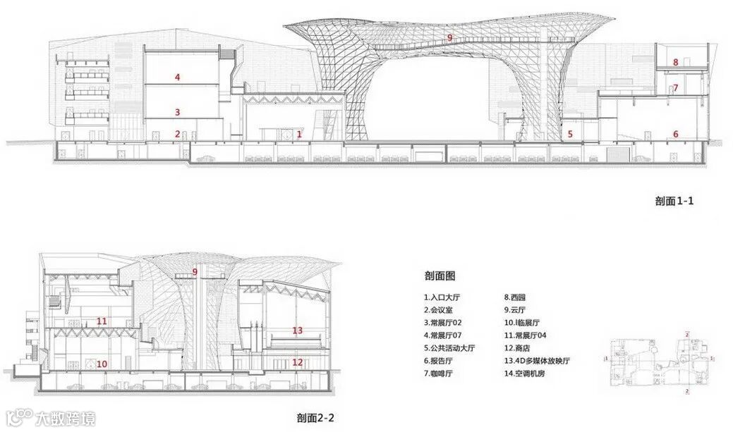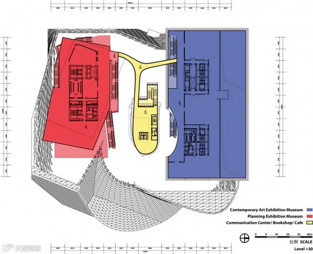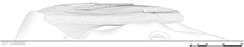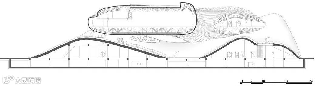 蓝天组分别设计了两座场馆,以强调各自的功能和满足不同的展示需求,然后将其统一在一个庞大的多功效表皮之下。