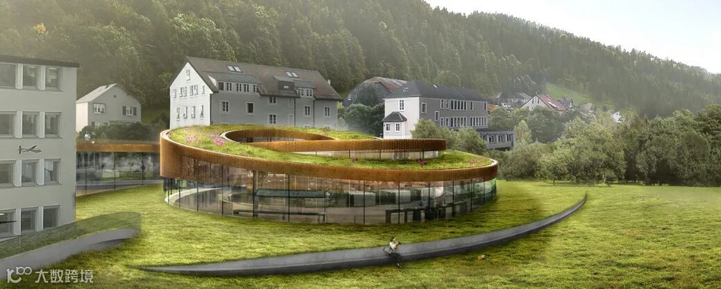 屋顶上遍布草坪,夏日解暑降温,冬天更似一巨大的牛乳卷般柔软。绿色的屋顶在吸收水分的同时,还有助于调节温度。