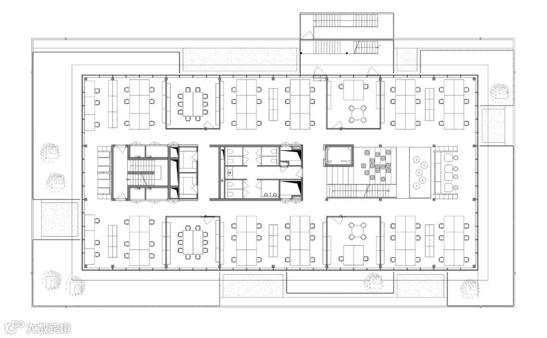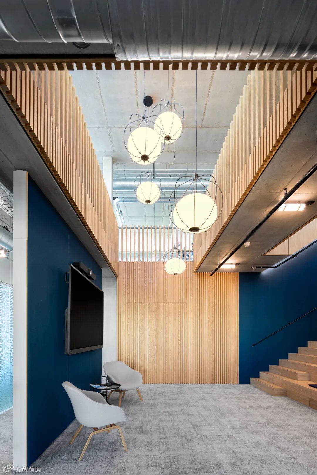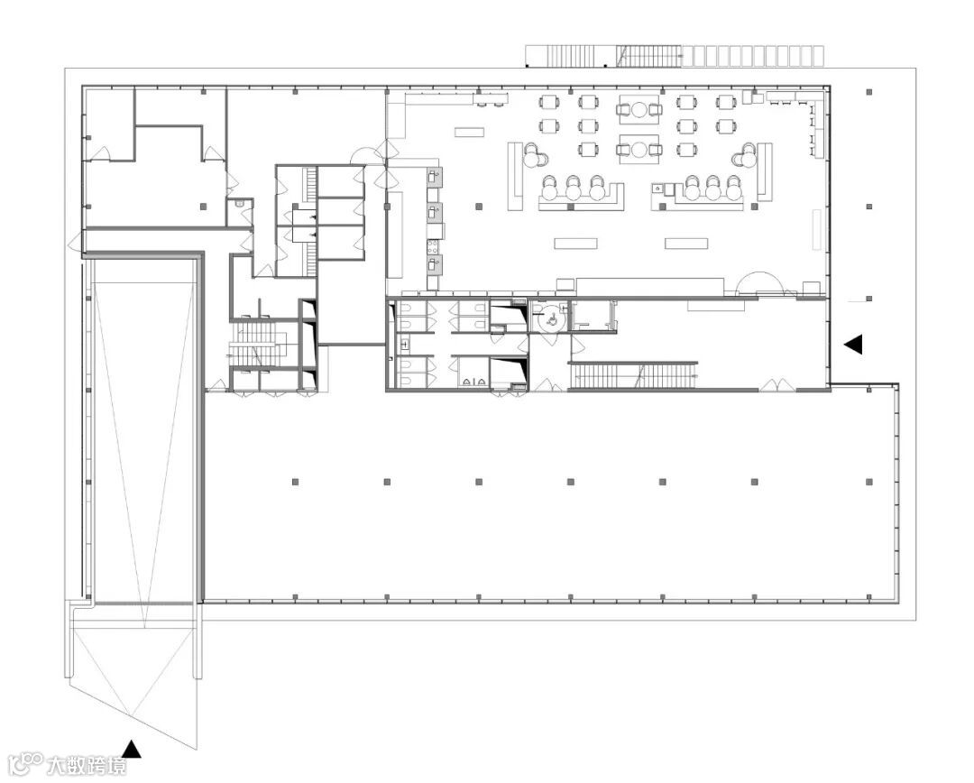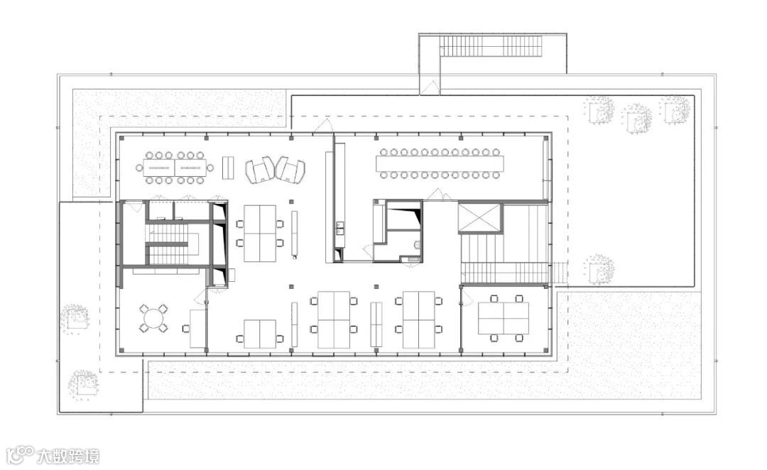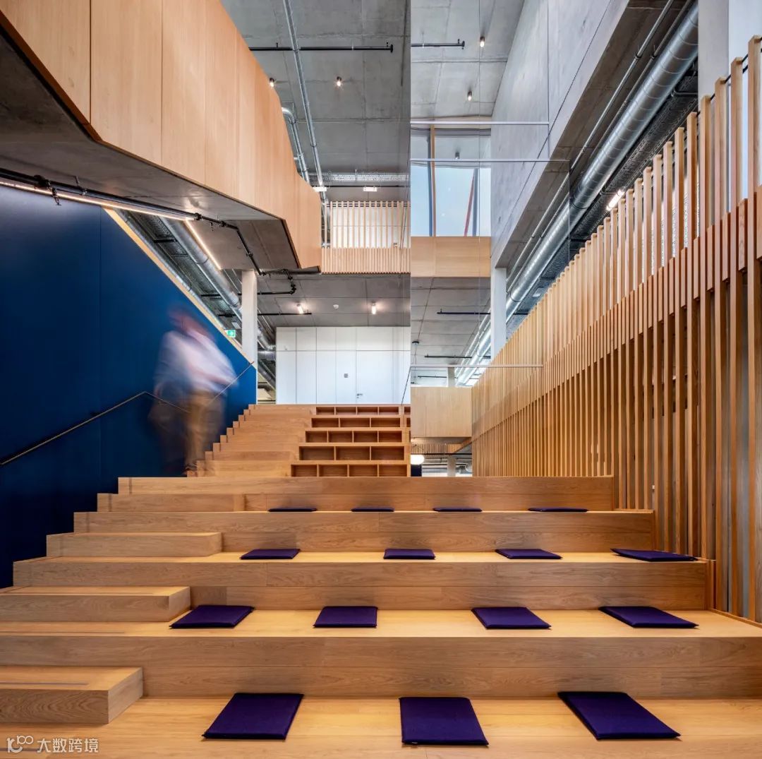 在建筑内,各种元素都经过了混凝土和天然橡木的处理。所有的技术在天花板上都是可见的,使室内有一个与正在进行的活动同步的制造方面。该项目的设计将工作场所的福祉置于其概念的中心。