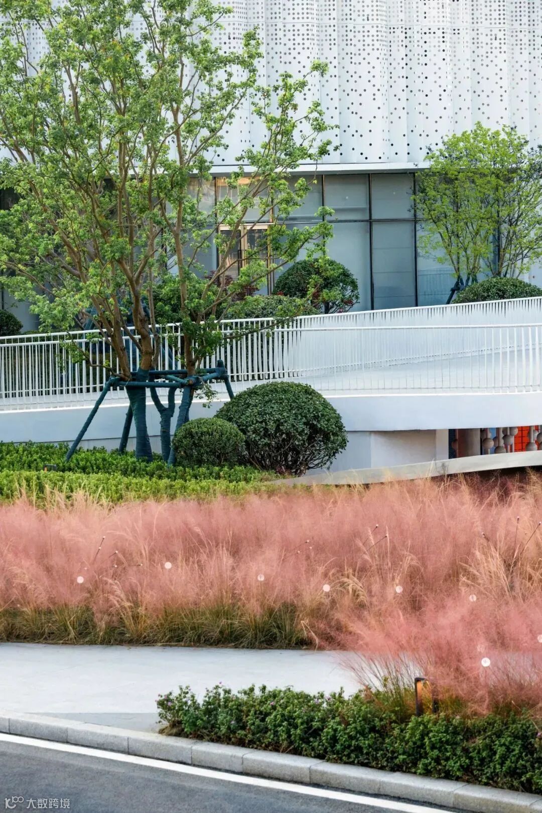 植物本身就具有一定的生态特性,硬质边界搭配植物,可有效的处理过“硬”或未修饰的景观边界。