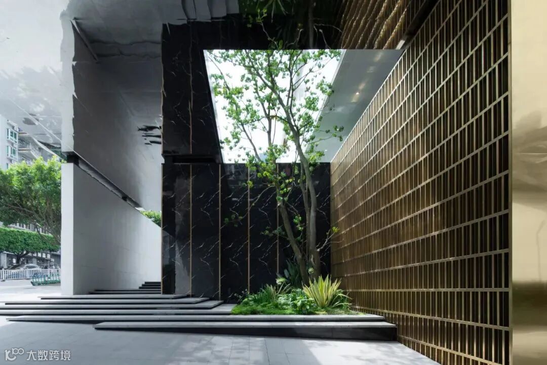 建筑与外部空间环境的边界明显,基本都属于刚性边界。这类边界界线分明,一般通过材质、铺装、种植等元素景观分割。