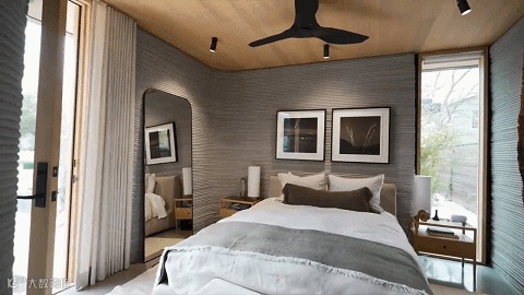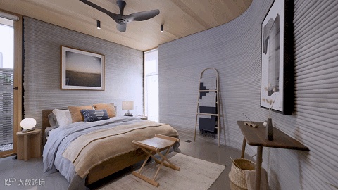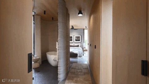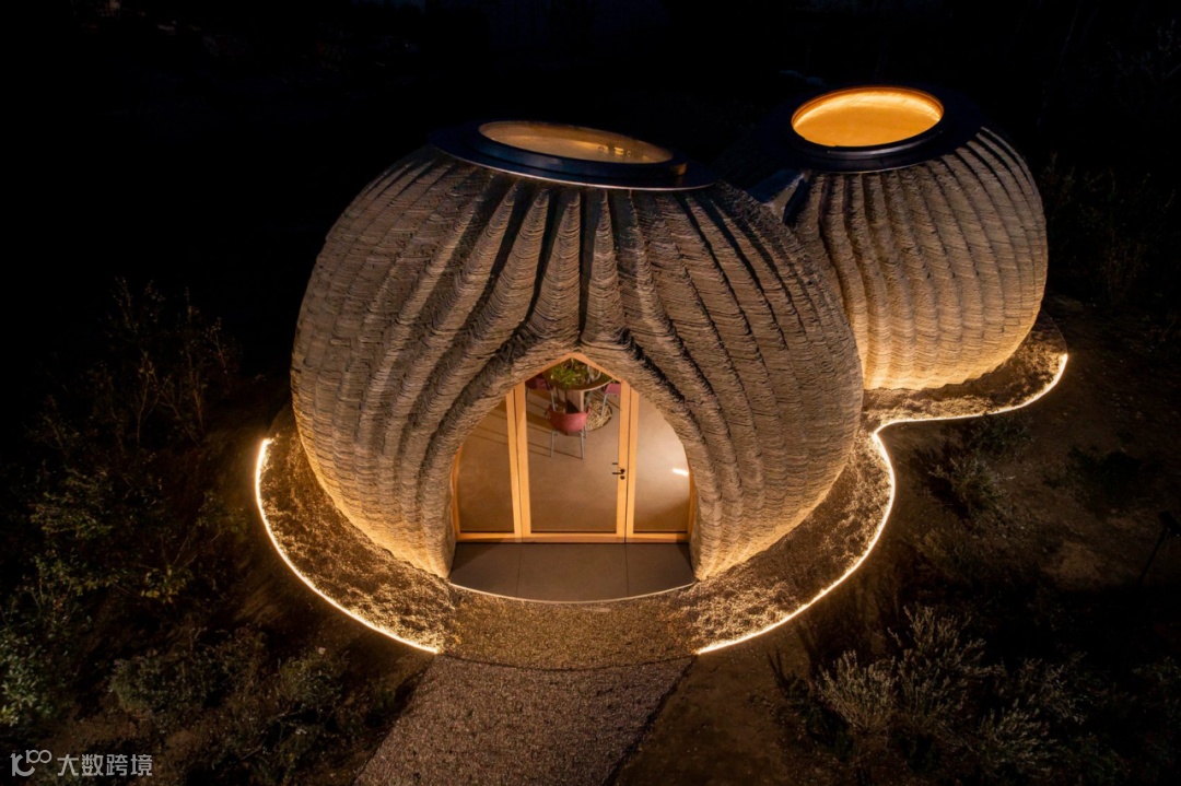 这是疫情期间为一对同居夫妇3D 打印的土坯制实验房屋供两个人在冠状病毒大流行期间单独生活在一起,共由三个房间组成。土坯墙由沙子、淤泥、粘土和水制成,使用三轴 SCARA打印,并在阳光下晾干和硬化。