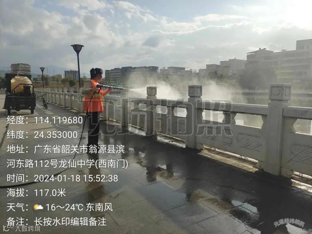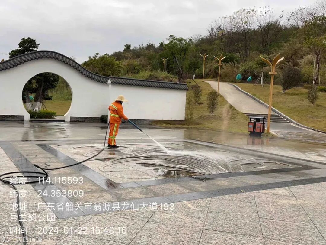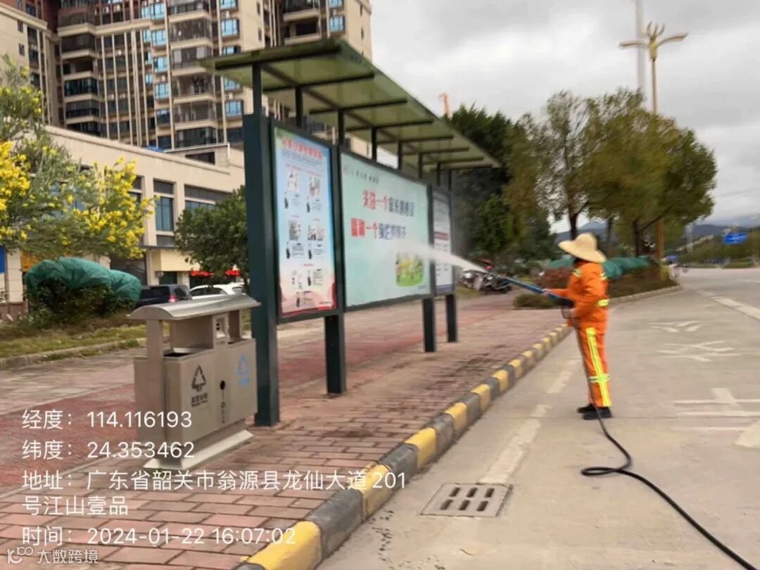 3、做好春节前公园广场,人行道,公益广告,公交车站冲洗作业。