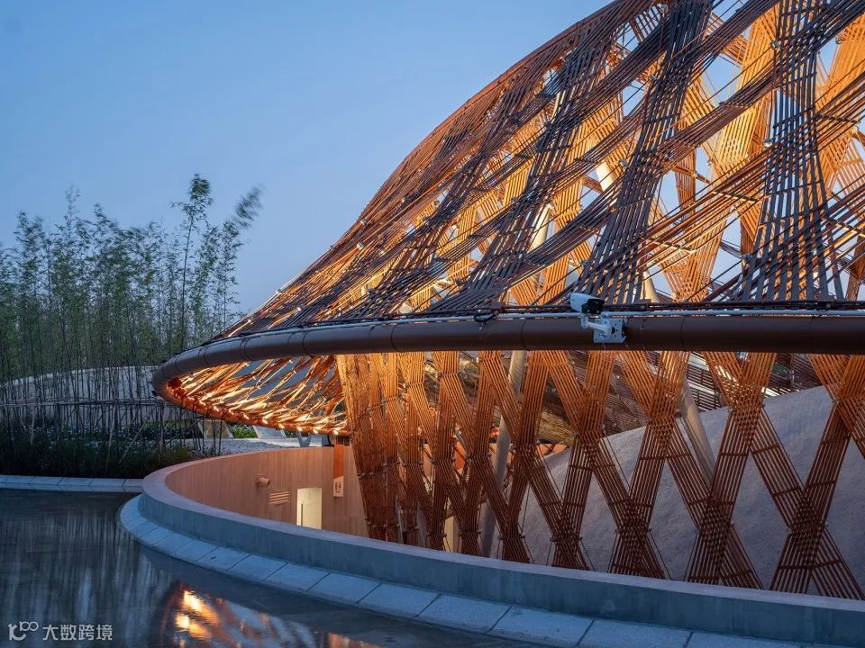 上海竹藤馆的设计希望整个建筑消解墙体、屋顶、结构等建筑要素,以一种连续的、均质表达的界面围合出形态与空间,使建筑器物化、雕塑化,以获得类似竹藤手工艺品的艺术表现力。