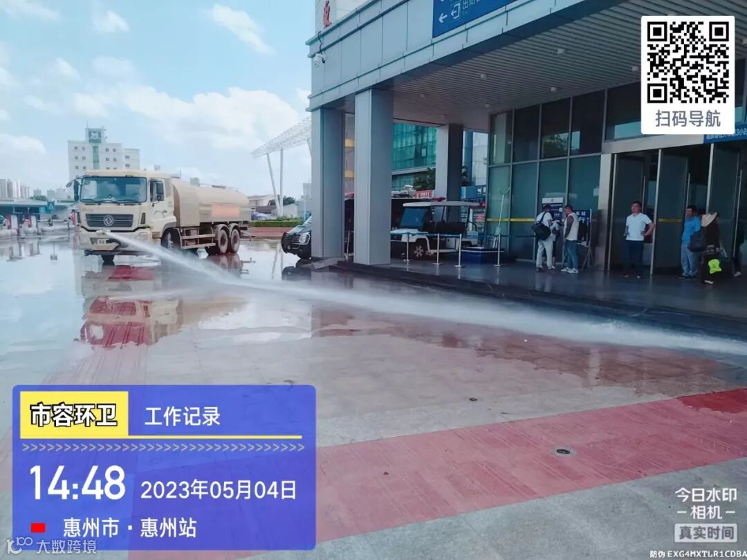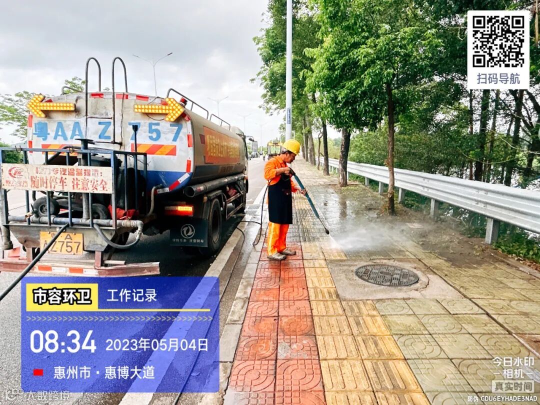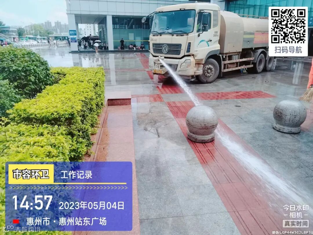 3、针对惠博大道人行道及火车站广场进行精细机械化冲洗保洁;
