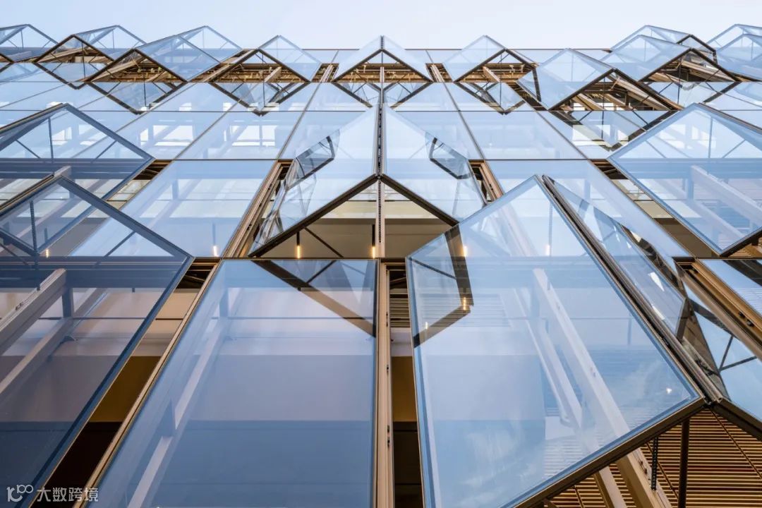 设计亮点是创新的“呼吸”立面,可折叠的玻璃幕墙,通过玻璃的打开与闭合,实现了调节室内温度、湿度以及空气质量的功能。