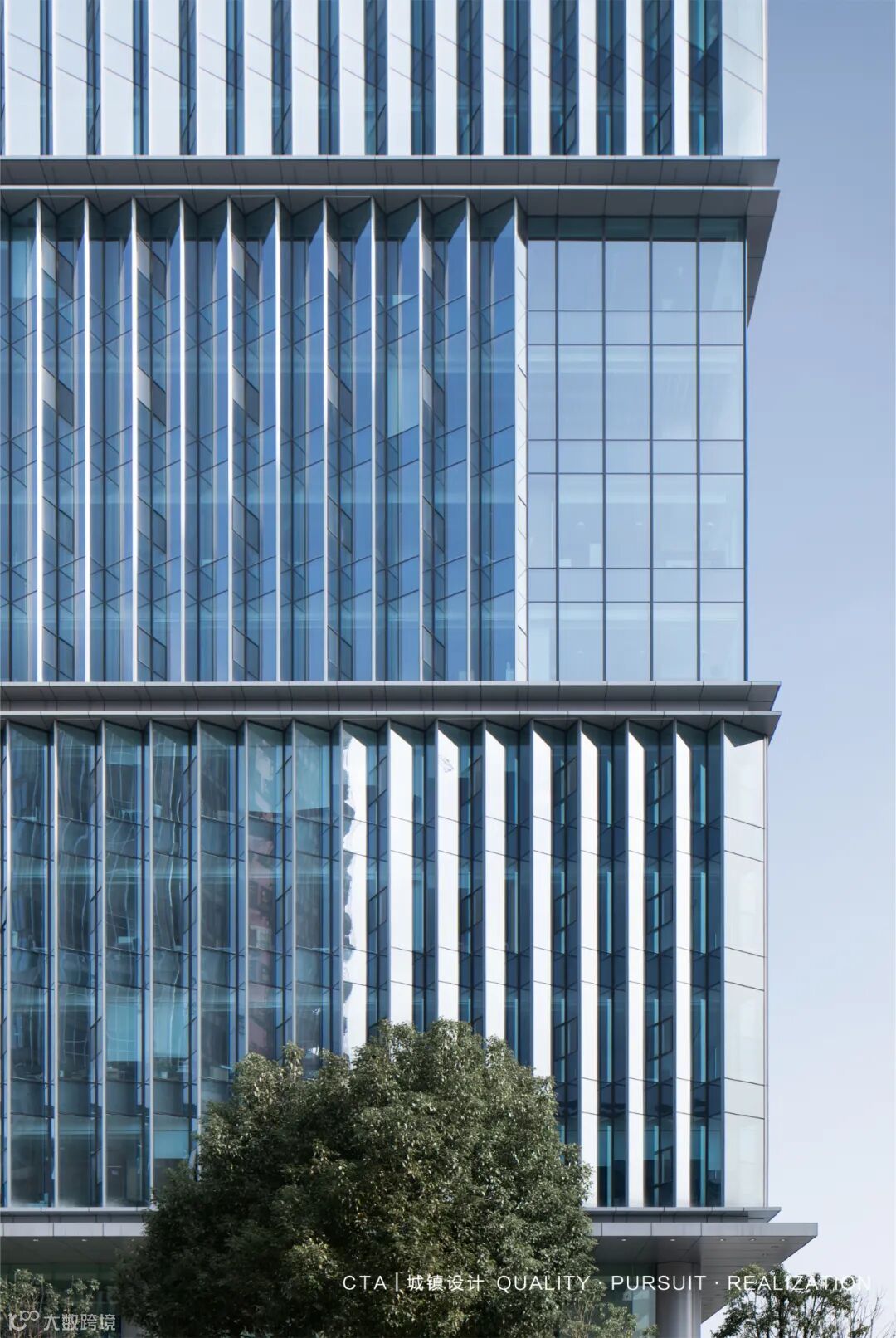 杭州滨绿大厦为顺应谦和而精致的建筑形象,表皮材料以玻璃、铝板为主,并通过妥帖的玻墙比例、精准的构造处理和材料搭接,在形体的沉稳与轻盈之间达成平衡。