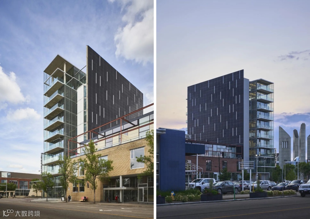 成本控制 – 彩色单元化立面。彩色涂料结合穿孔金属板,造价可控。单元化立面保证了均好性的同时,可仔细雕琢基础单元,批量生产控制成本。