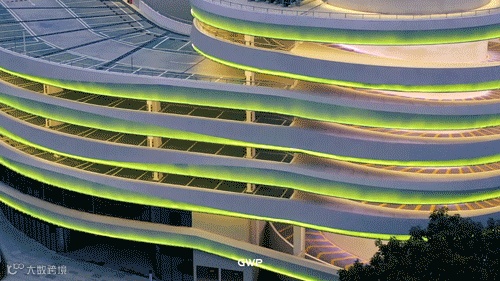 项目用地位于杭州经济技术开发区,用地呈狭长的三角形,建筑造型摒弃了冗余的建筑语汇,以漂浮的建筑形体,开放而有韵律的建筑表皮,结合流线形的灯光布置与生态绿植的引入,既体现了汽车工业式的美感,具备必需的辨识度;又区别于传统停车楼冰冷、封闭的形象。