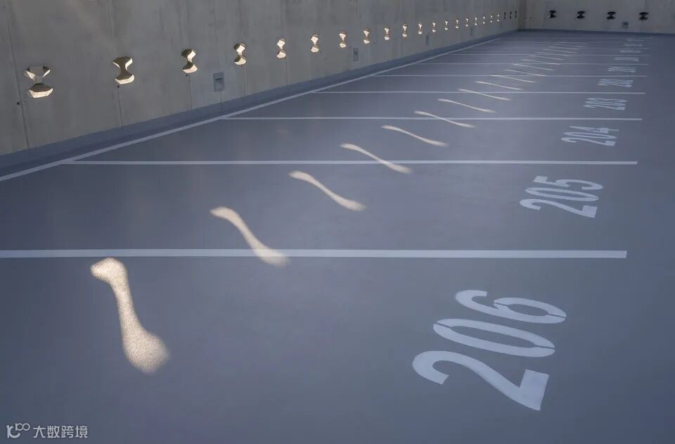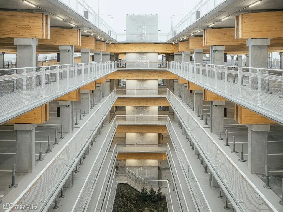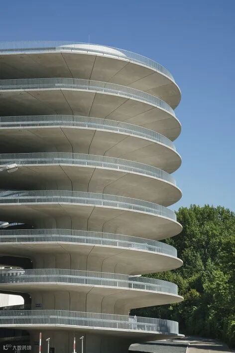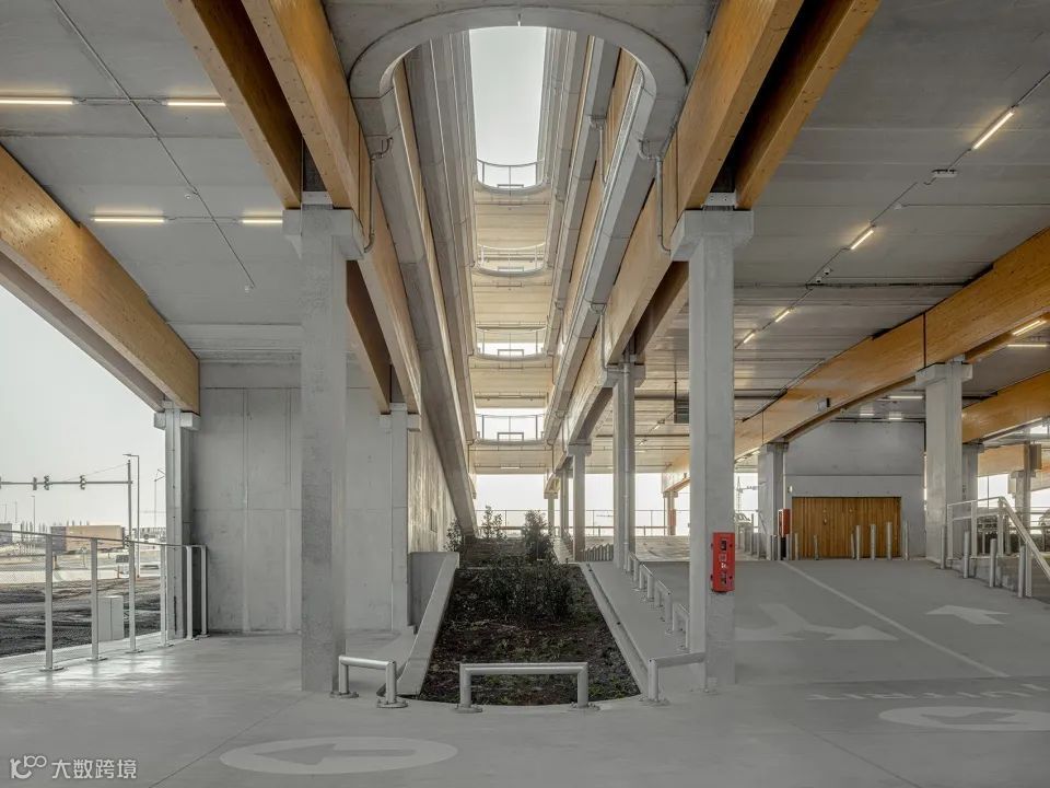 该停车楼摒弃了所有修饰元素,展示出清晰和经过细致考量的结构和材料使用,总容量约为4000辆,支撑结构即是建筑本身:柱梁、楼板以及精心设计的轴承直接定义了建筑的形象,建筑没有立面,只有节奏和衔接。