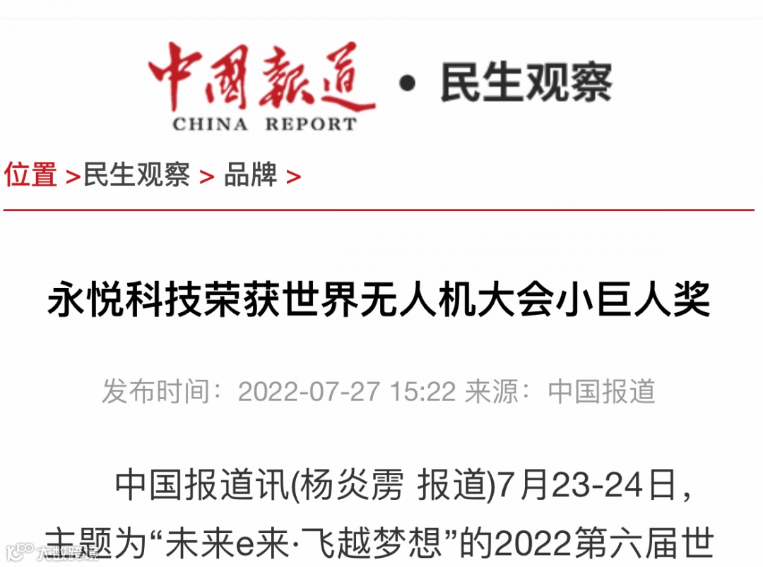 由此可见,国家级媒体报道“永悦科技获奖”的背后,是对永悦科技积极探索,勇于打破无人机产业壁垒的高度认可与正面肯定。