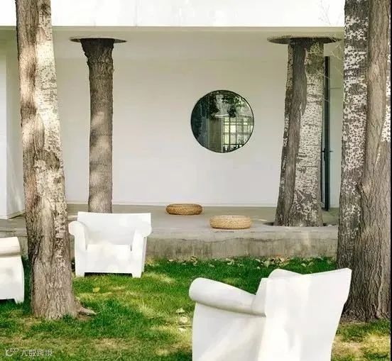 一个小圆桌和几把分散随意的椅子足矣
