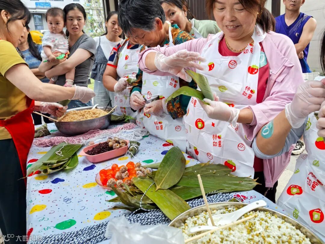5月24日下午,潜润悦澜庭中央园林廊亭内粽香四溢、欢声笑语不断。数十组业主、客户家庭齐聚一堂,参与“端午粽情·悦享邻里”包粽子大赛,提前感受端午节佳节。大家身着统一围裙、佩戴手套,在专业老师的指导下学习包粽技巧,从粽叶折叠到棉线捆扎,每个细节都凝聚着美好生活的热爱。