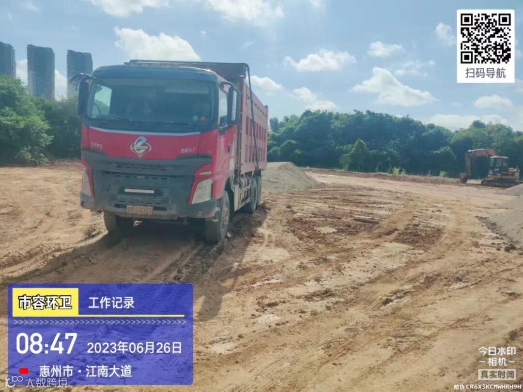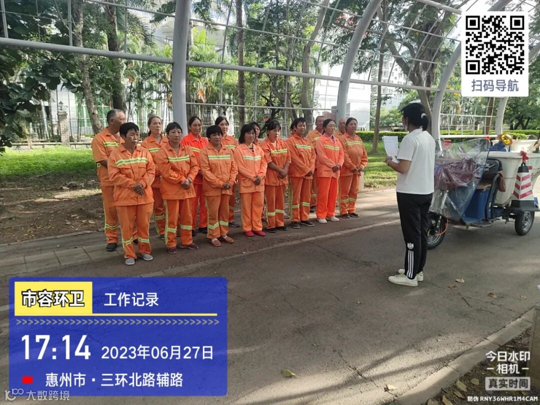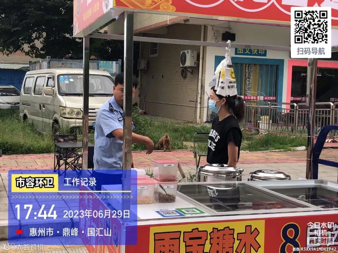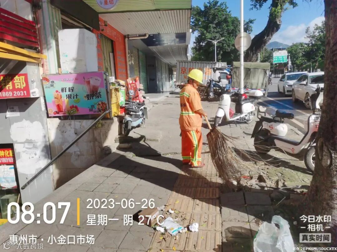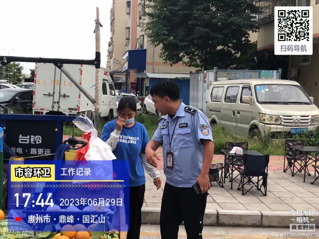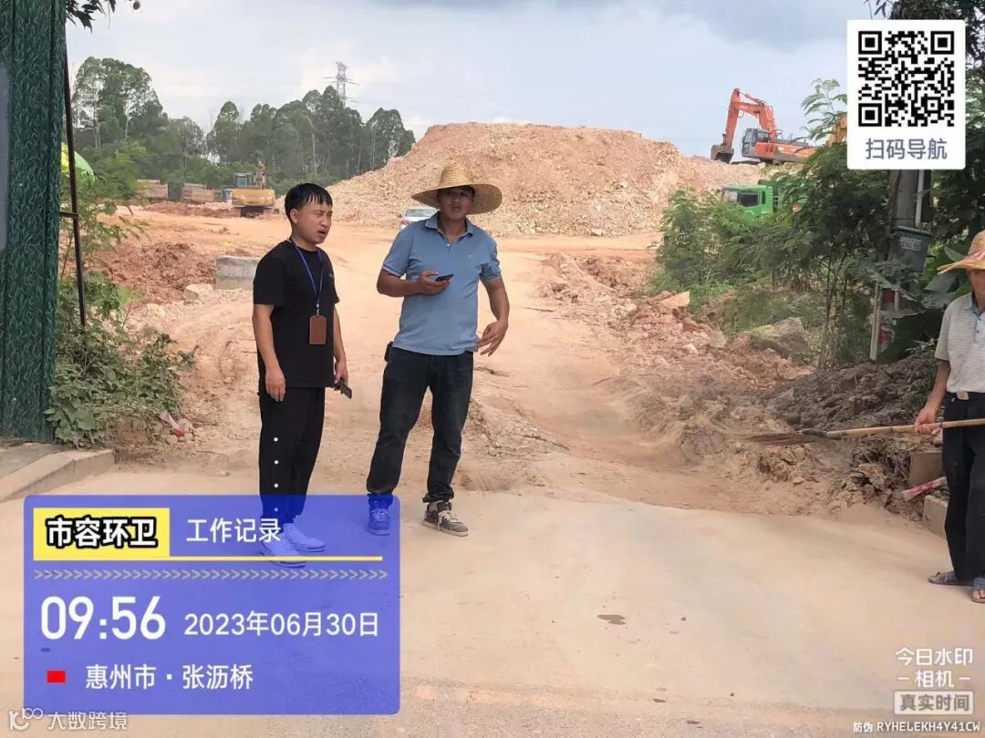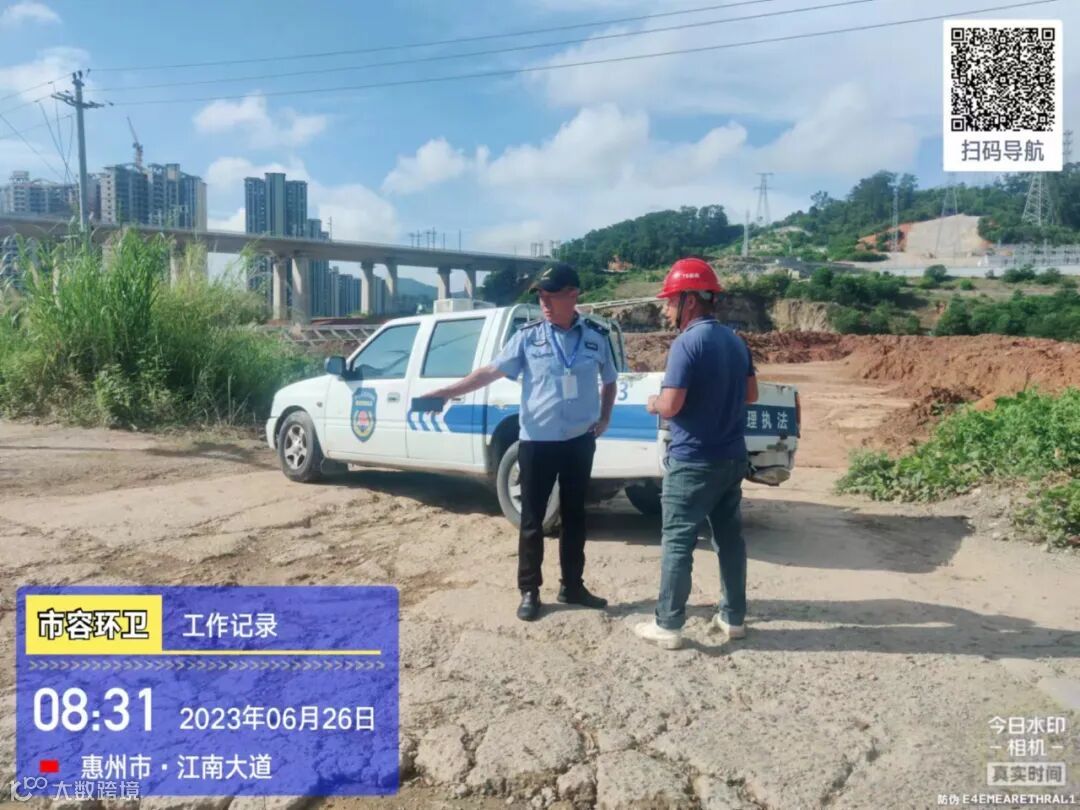 劝导小组进行流动商贩垃圾定点投放及工地污染路面整改劝导