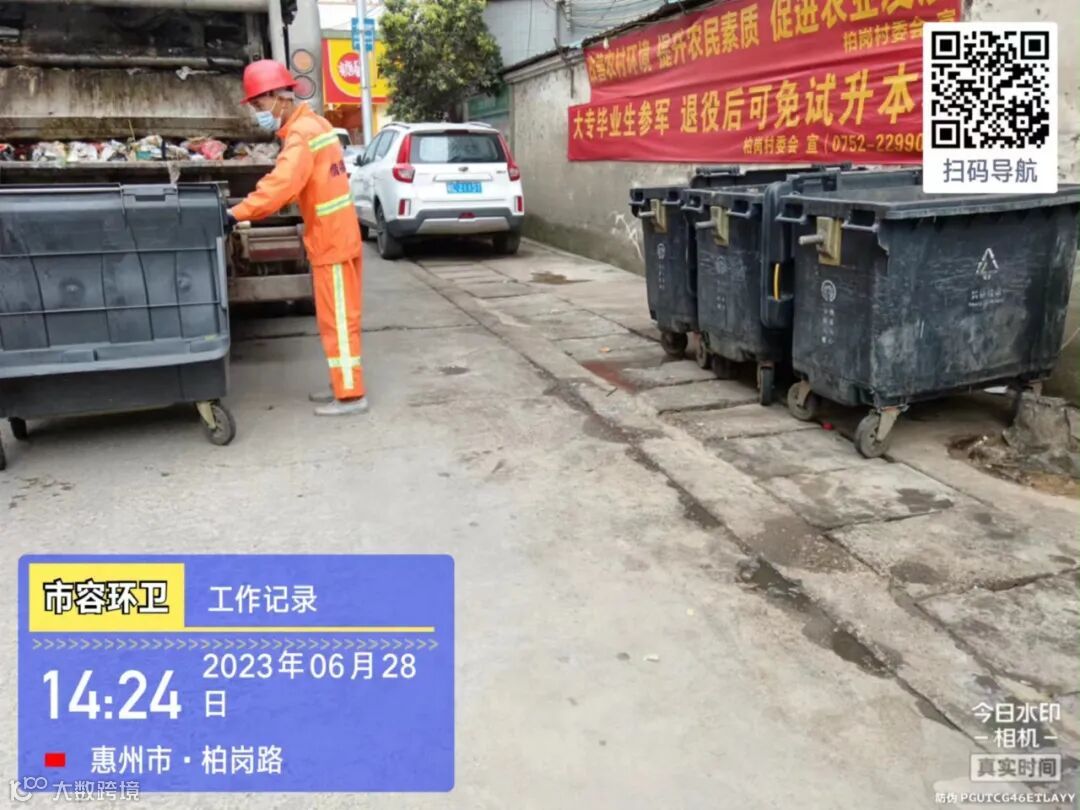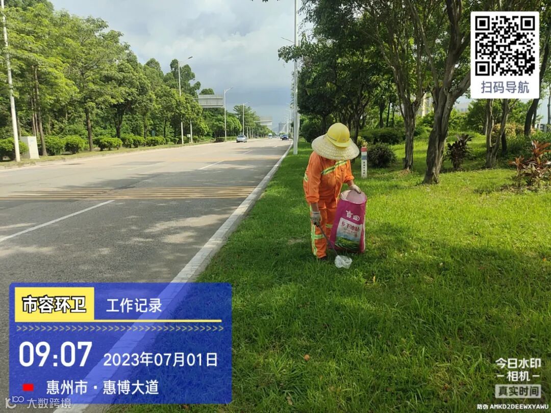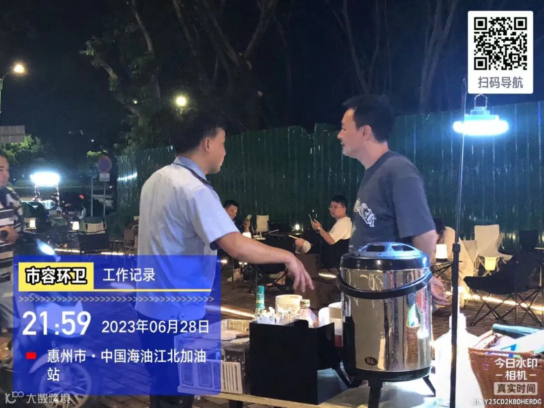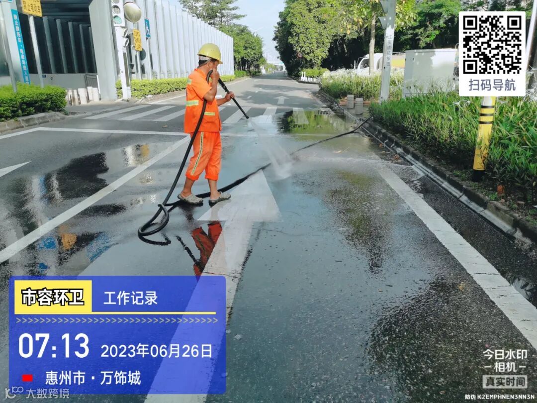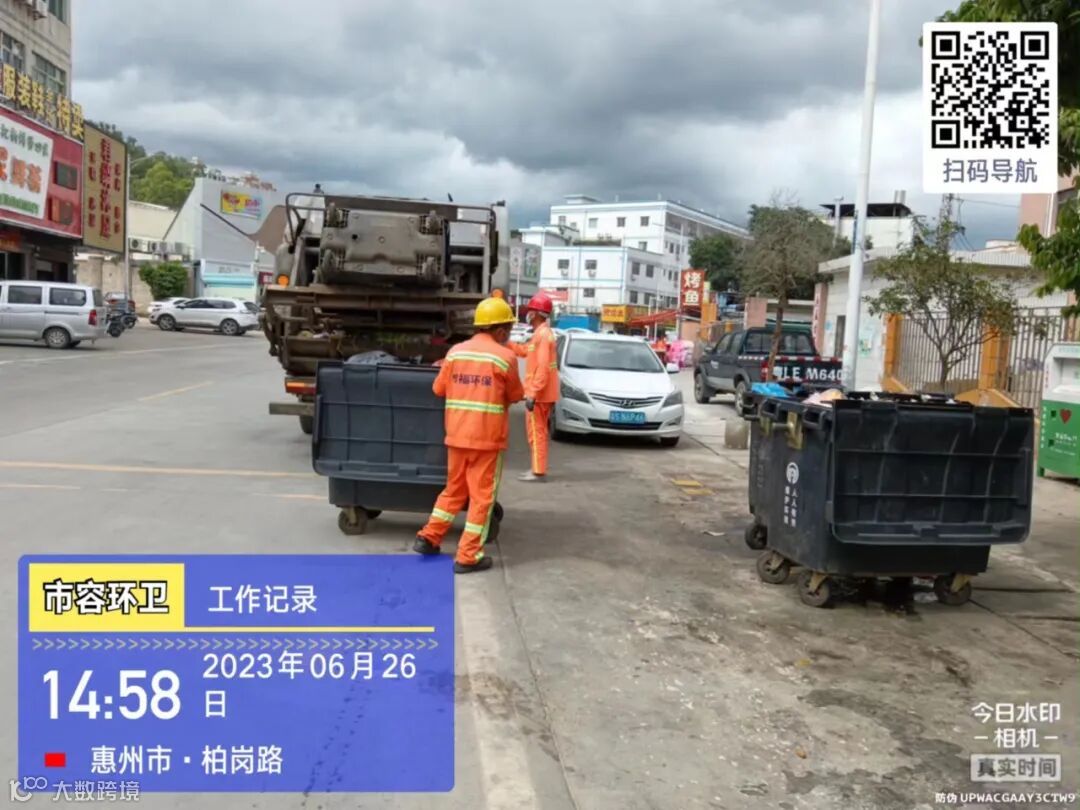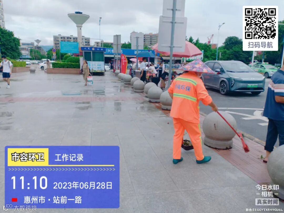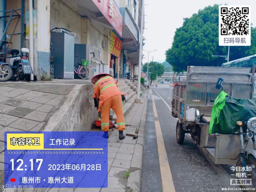 劝导小组进行流动商贩垃圾定点投放及工地污染路面整改劝导
