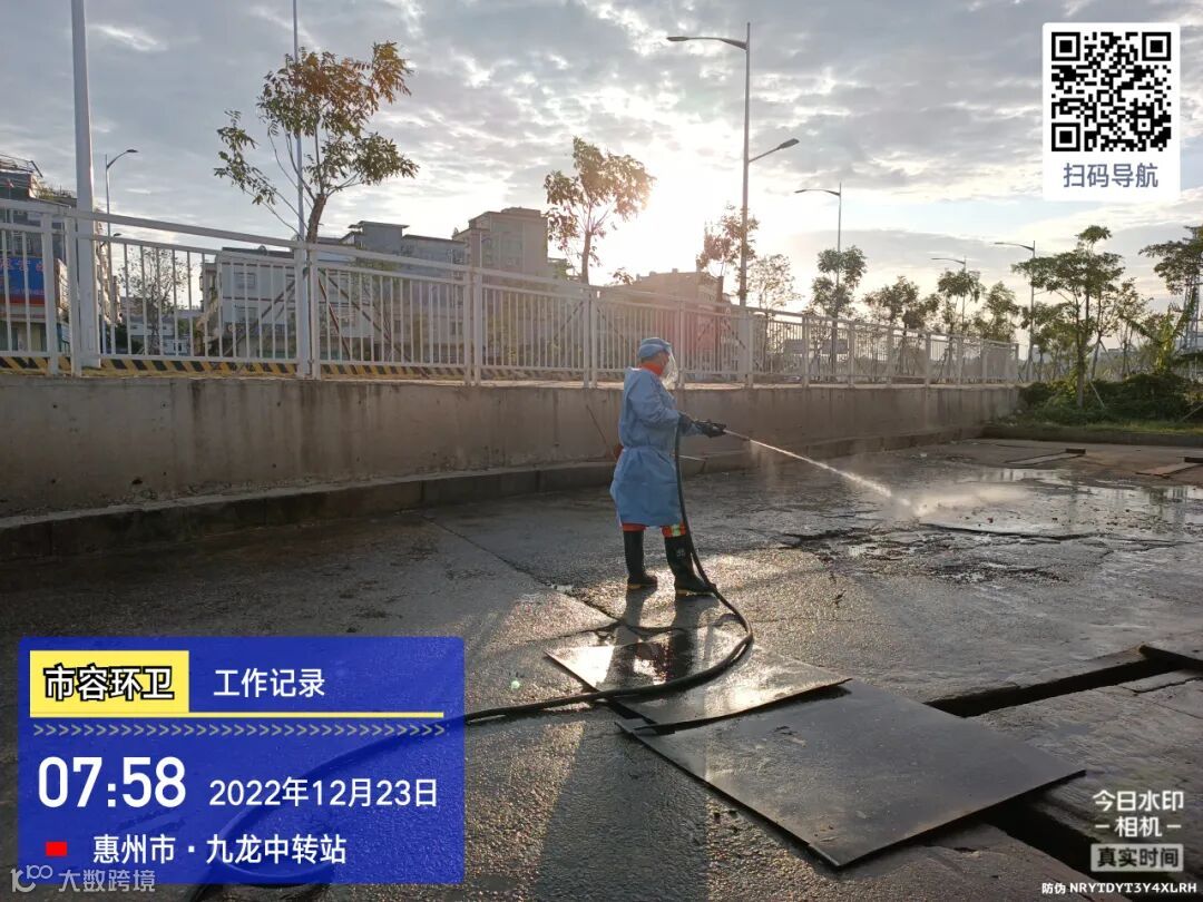 中转站/公厕日常作业及维护,每日两次以上高压冲洗并喷雾消毒站内外地面及箱体