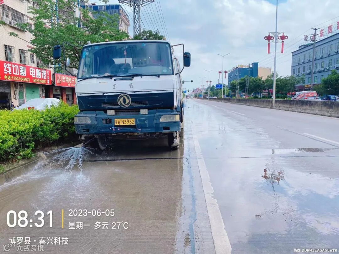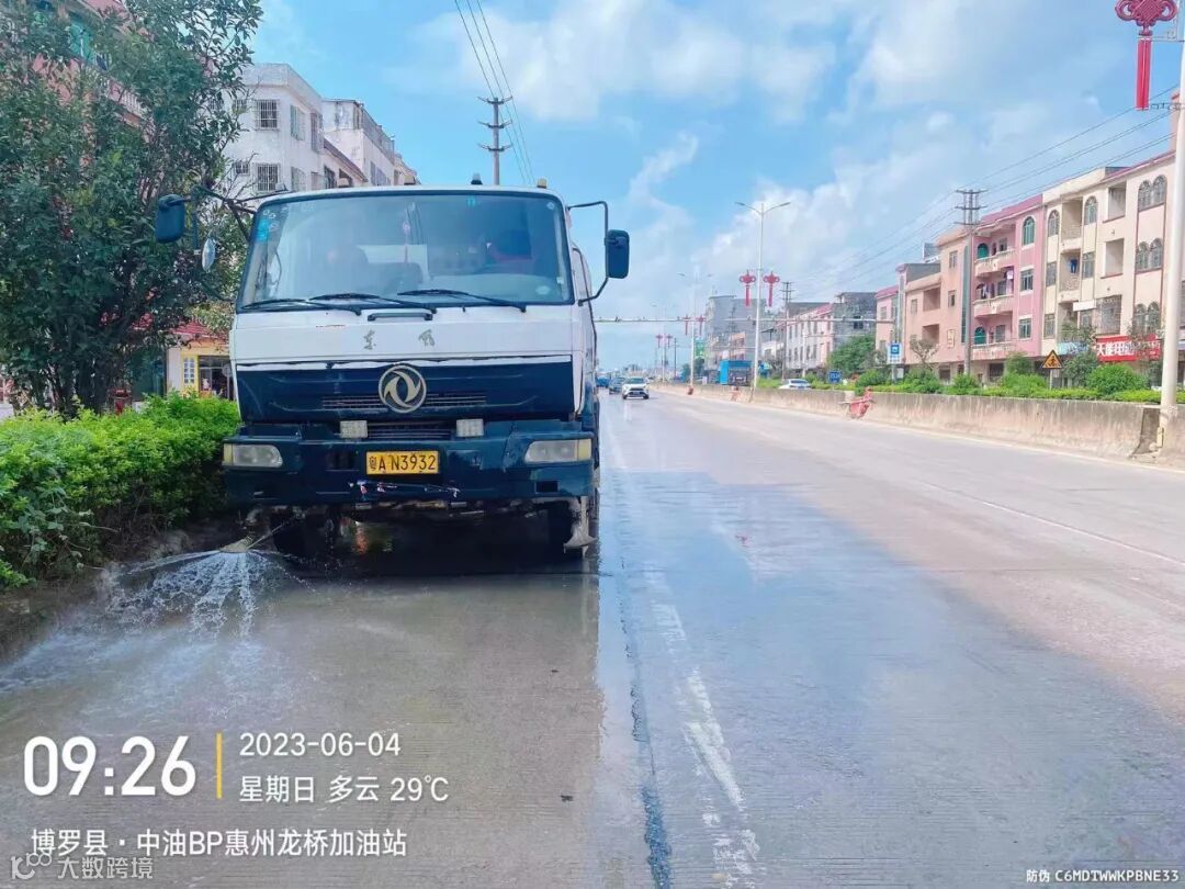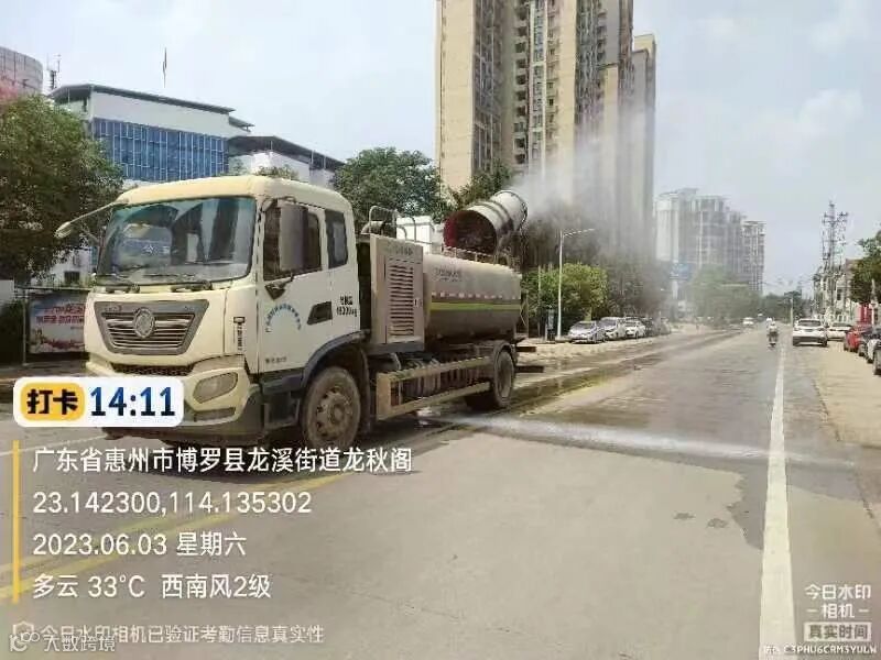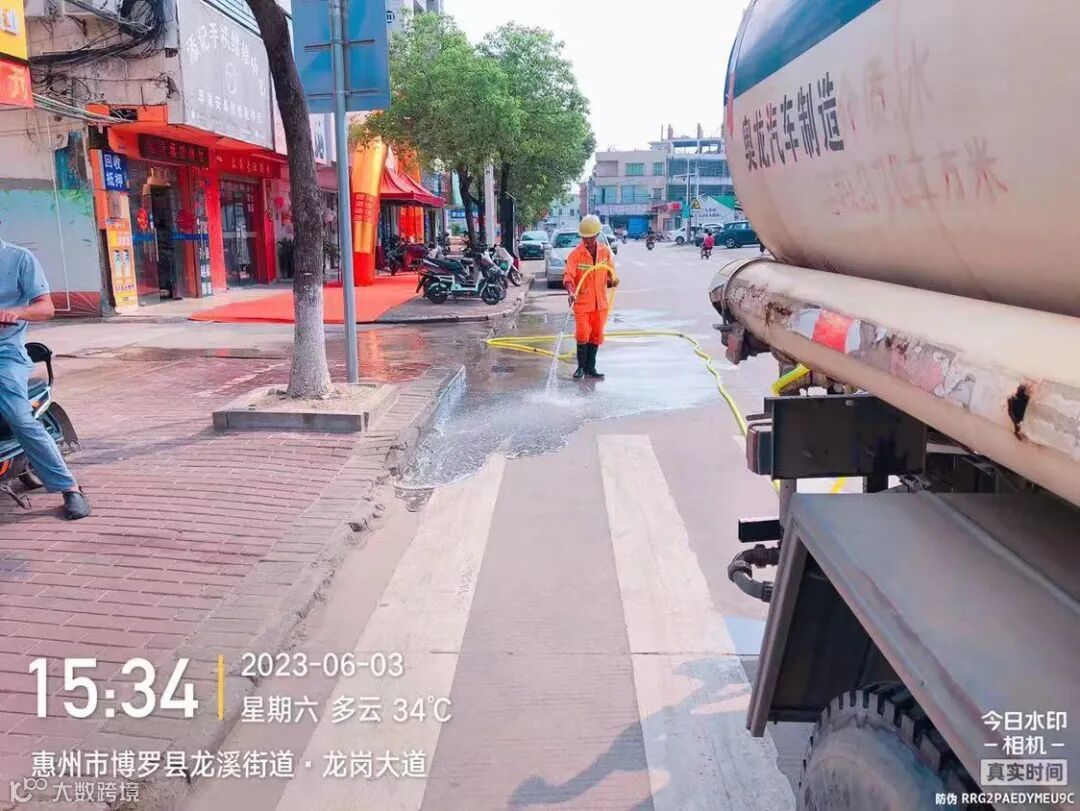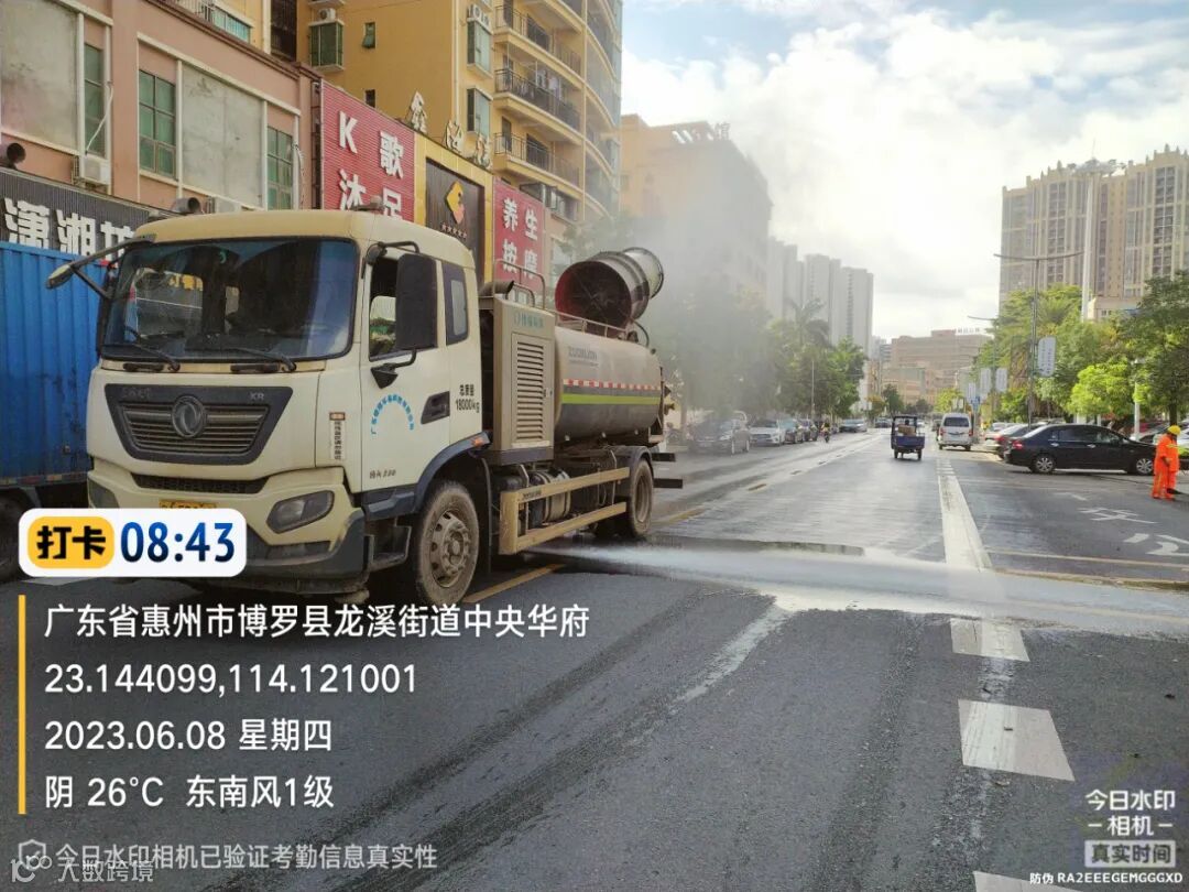 加强镇区和龙桥大道、广汕路的洒水降尘作业。