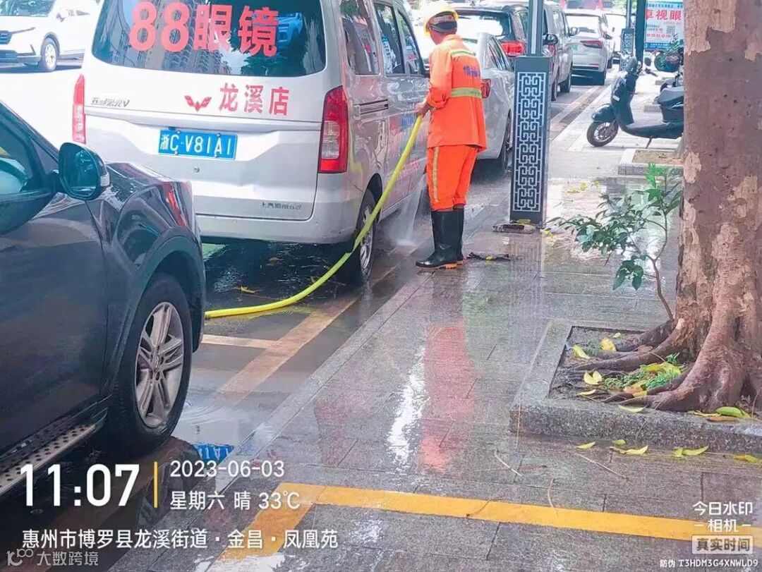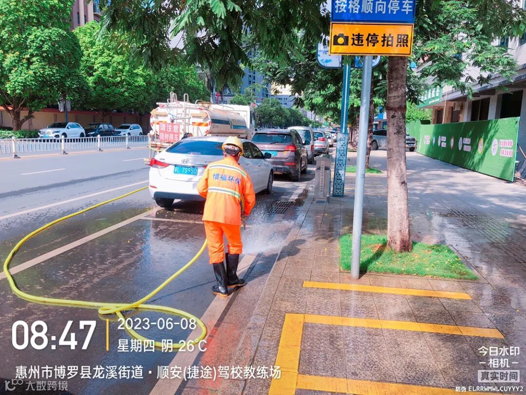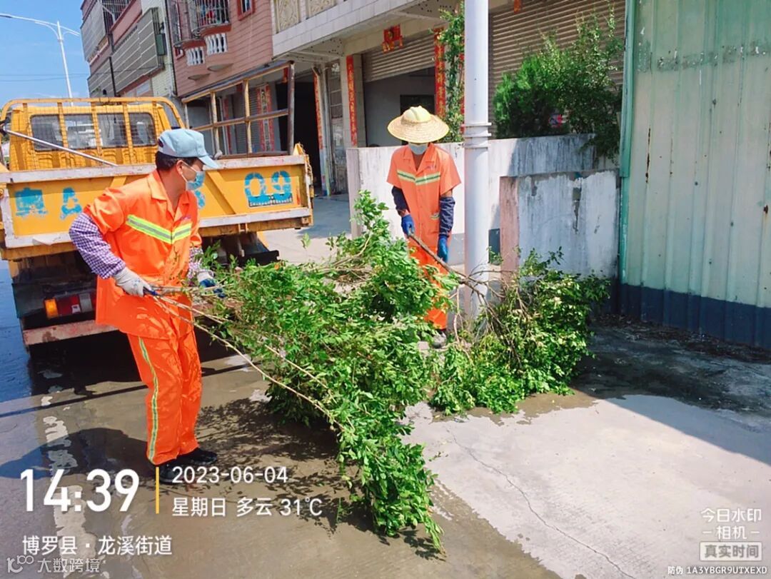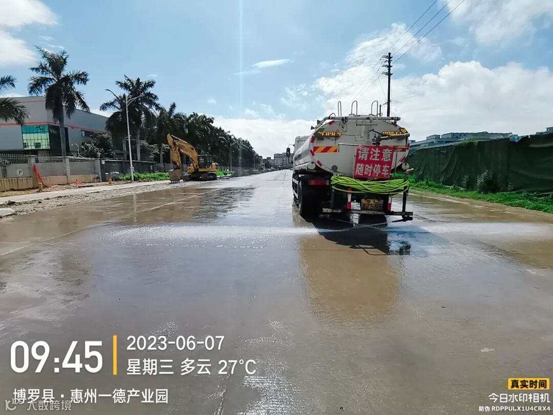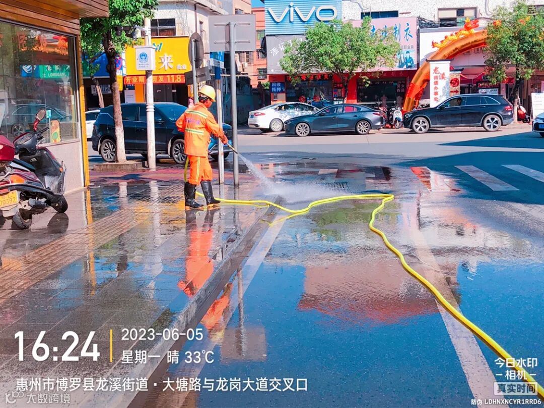 加强镇区和龙桥大道、广汕路的洒水降尘作业。