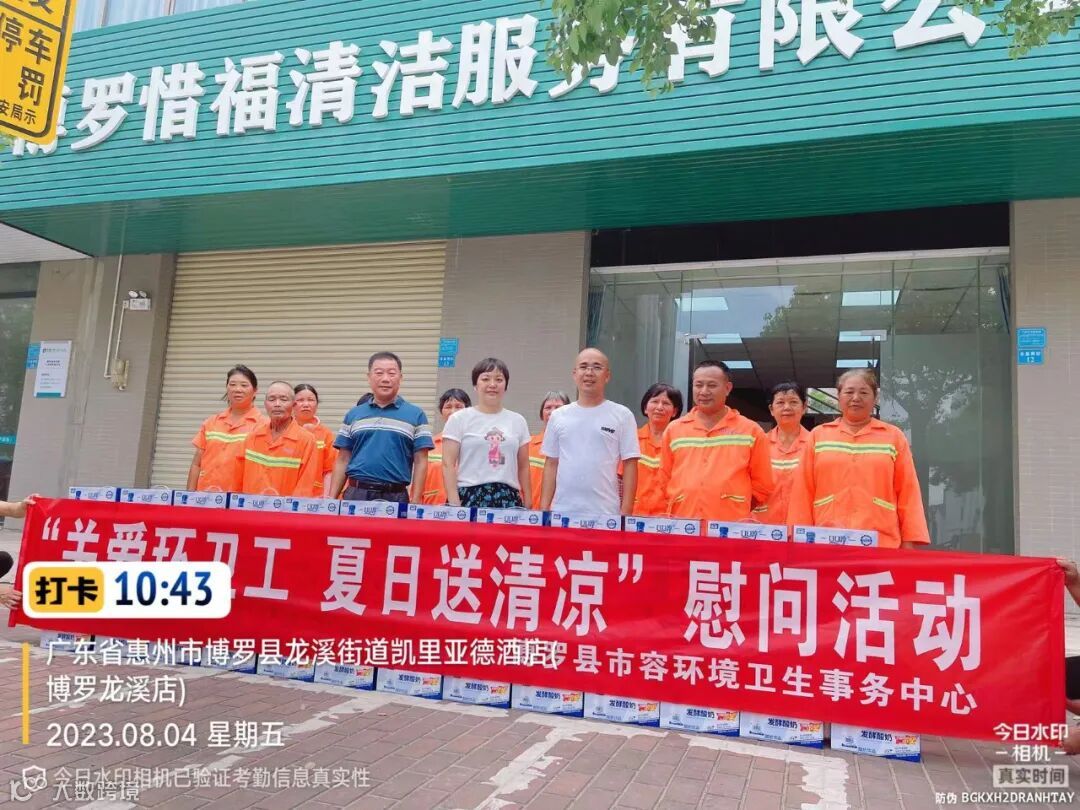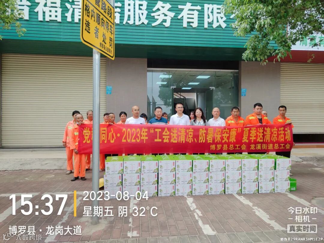 惜福环境家庭平台县环卫中心工会陈主任代表县总工会“夏日送清凉”,慰问一线环卫工人