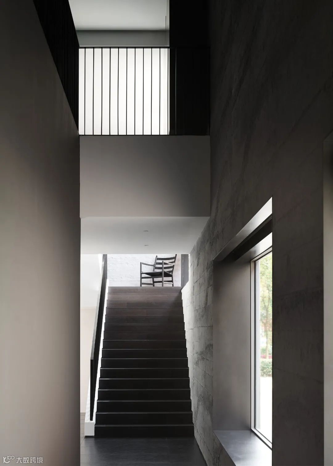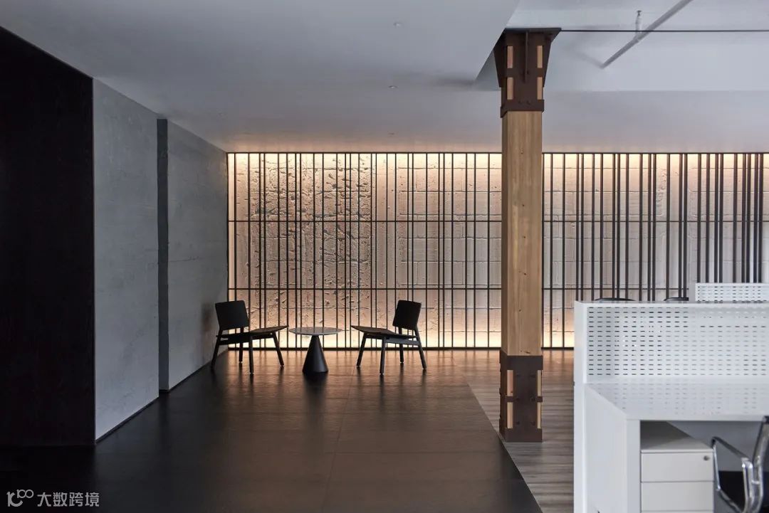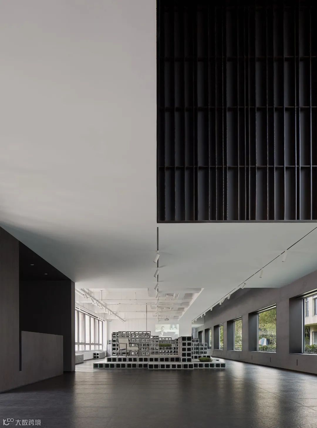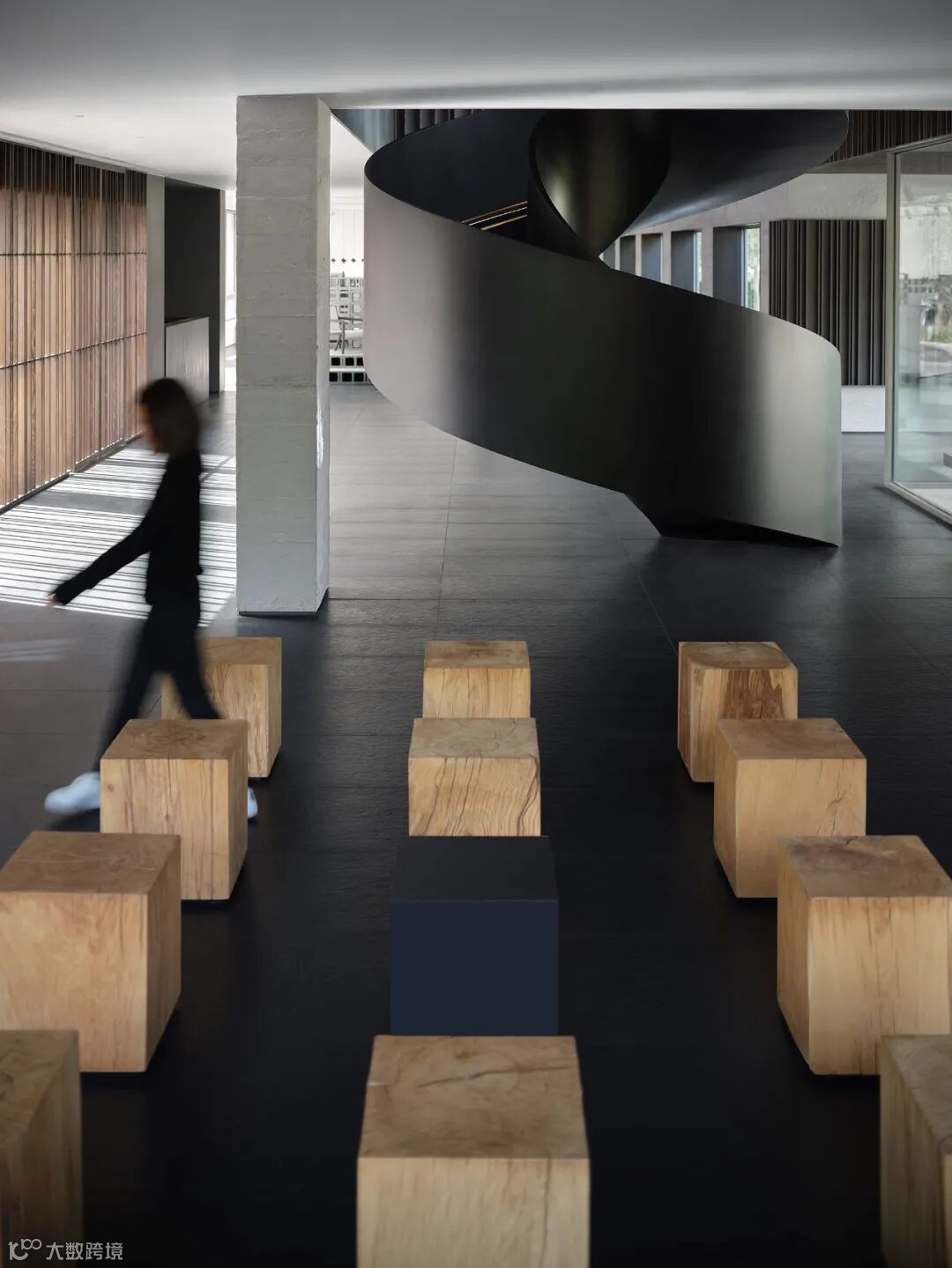 接待前厅宛如枢纽一般,不同的功能分区围绕其向两边蔓延,追求开放性与流动性。基于原始建筑的大片窗体,塑造出重复式、阵列式的套口秩序。多处挑空让光线得以平稳保证,也为两层之间注入了互动,令交流渗透发生。