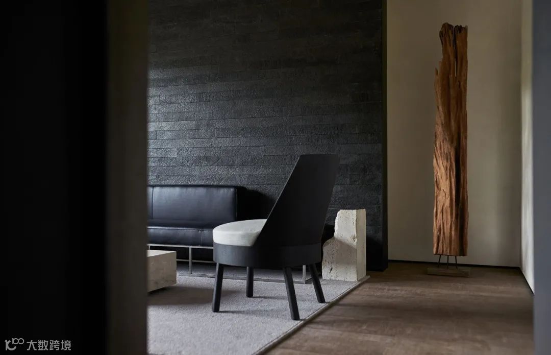 暗黑基调打底,包容、低调且高级的质感油然而生。石材上凹凸打磨的痕迹,一定程度上弱化了方正的棱角,显得松弛与率性,也滋养出韵味与光泽,别有一番玩味。